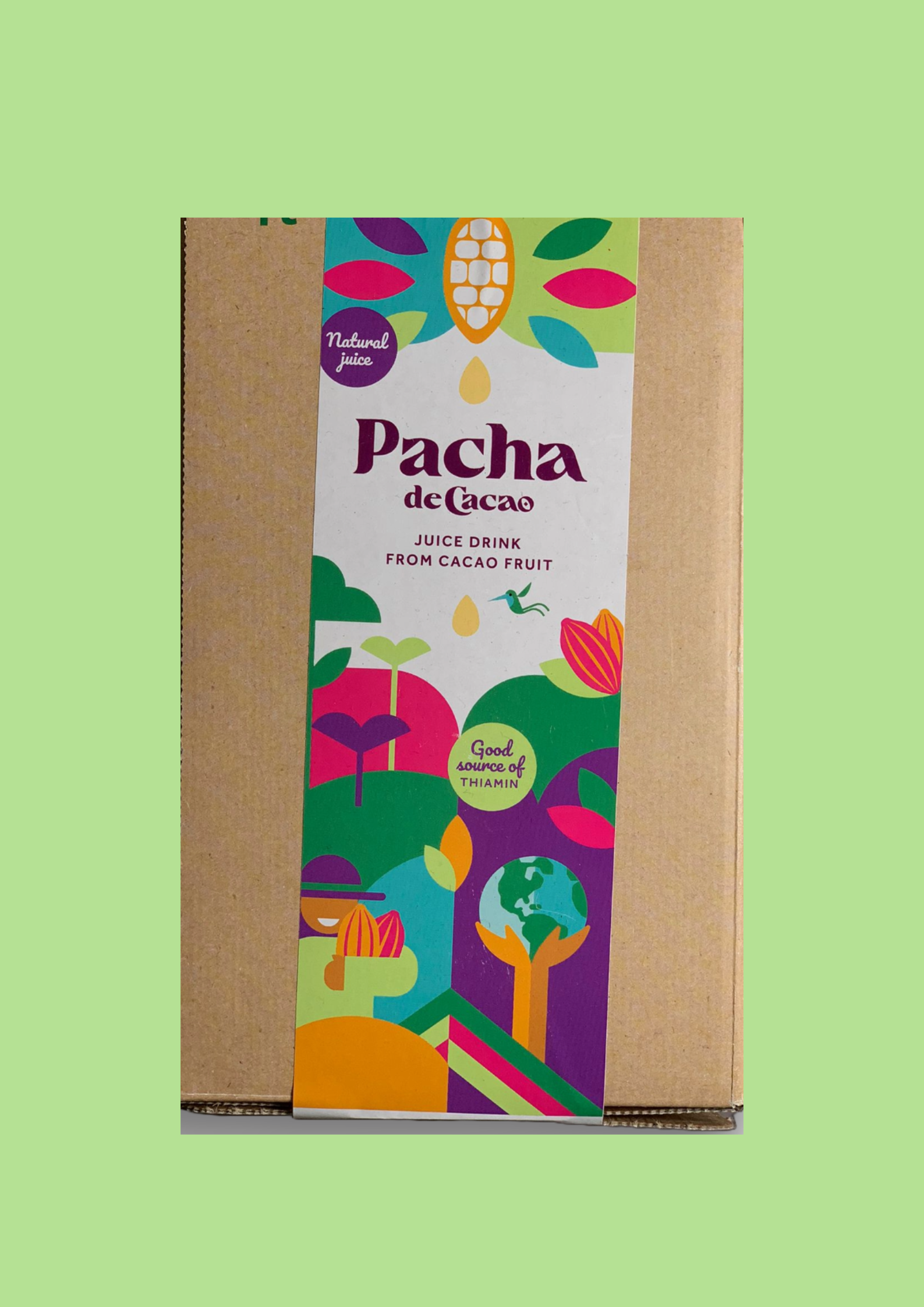 ¿Estás buscando algo completamente nuevo y emocionante? El cacao es una fruta. Las semillas están cubiertas con una capa blanca de pulpa de fruta que normalmente se desperdicia. Es delicioso y sabe a piña, pera y manzanas verdes con notas de miel y toques de fruta fermentada. ¡¿Quién podría haberlo adivinado?! Energía natural. La pulpa de cacao es rica en nutrientes. Su alto contenido en vitamina B1, magnesio y potasio son una gran fuente de energía natural. ¡La tarde perfecta para levantarme! Menos azúcar, sin aditivos descabellados. El cacao tiene azúcar, como cualquier otra fruta, que proporciona energía y sabor. Pacha Original tiene un 35% menos de azúcar que los zumos de fruta comunes. Pero lo que no tiene son aditivos originales o aromas misteriosos como muchas otras bebidas. Solo cacao, fruta y agua... ¡y eso es todo! Todo natural. Sustentable a propósito. Somos pioneros en el mundo del cacao; utilizamos un ingrediente completamente nuevo que siempre se pasó por alto. Reducir el desperdicio de alimentos, aumentar los ingresos de los agricultores y avanzar hacia un futuro más verde en Sudamérica. Siempre estamos en un camino hacia algo mejor. ¡Le invitamos a unirse a nosotros!