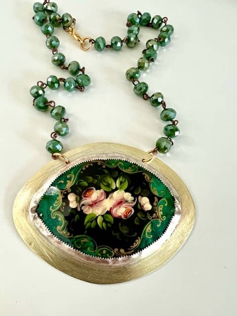 Las joyas de Michelle DaRin se describen mejor como de estilo bohemio, atrevido, atrevido y ecléctico. Los diseños de Michelle DaRin se inspiran en su amor por el color y la naturaleza. Utiliza una variedad de materiales que incluyen cobre forjado y esmaltado, plata fundida, resina, bronce, plumas, cuero y piedras preciosas. Michelle se licenció en Escultura en SUNY Cortland. Luego cursó su maestría en orfebrería en la Universidad de Syracuse y combina su amor por la escultura con joyas artísticas portátiles. Su trabajo ha aparecido en varias revistas como W, Bridal Guide, Where Women Create, Tango, Syracuse Women's Magazine, The Post Standard, así como en NBC Today Show, Bridge Street y Daily Candy. Su trabajo está en constante evolución y refleja su pasión por el arte, la vida y el proceso creativo. Su estudio está ubicado en el hermoso norte del estado de Nueva York, en sus 7 acres de inspiración con su familia y cuatro perros. Todos los diseños están protegidos por las leyes federales de marcas comerciales.