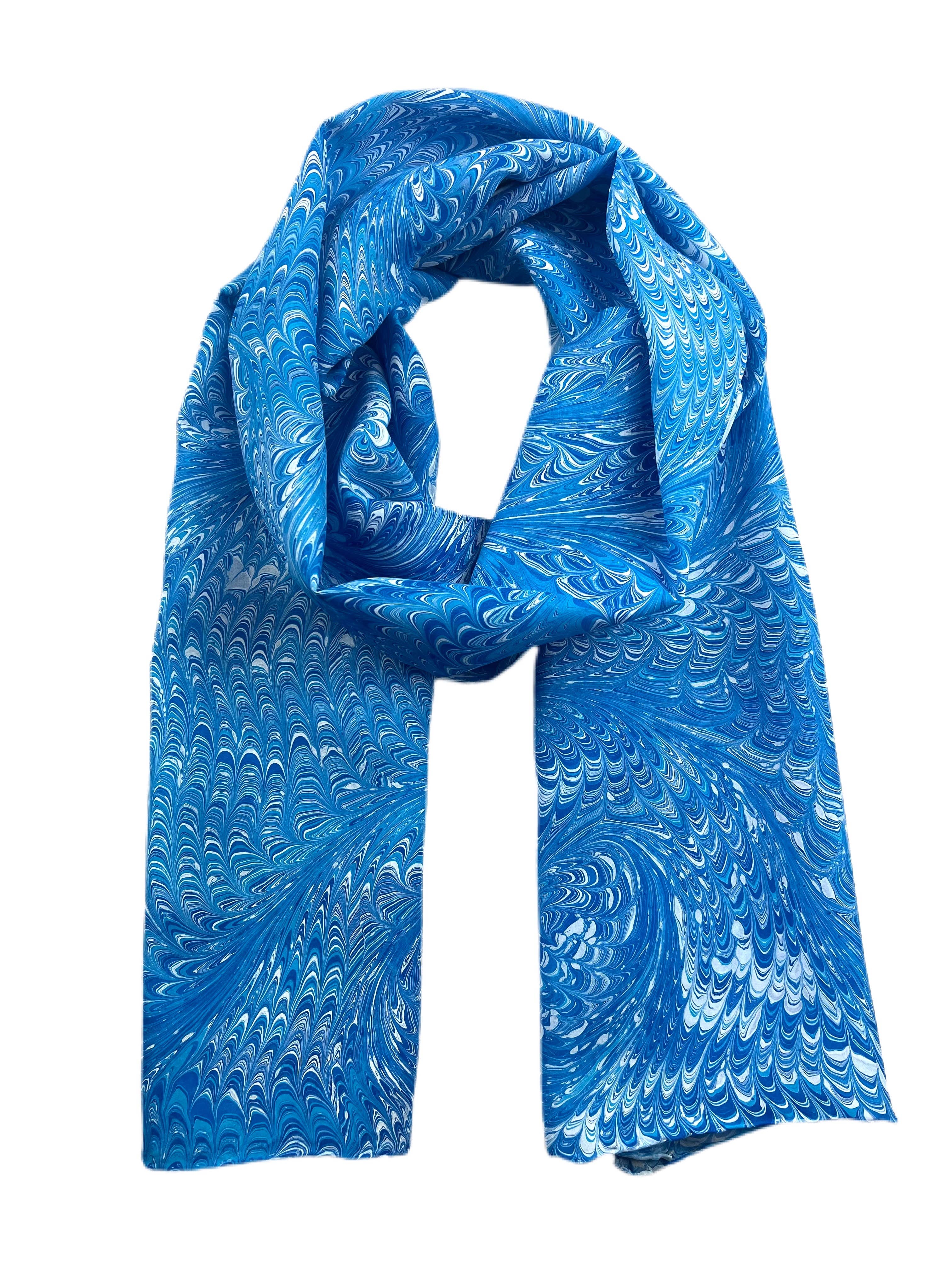 El marmoleado de hiedra azul es arte convertido en accesorios hermosos, únicos y llamativos, y todo se hace pintando sobre el agua. El jaspeado, llamado tradicionalmente Ebru, es un fascinante proceso en el que las pinturas flotan en un baño de agua, se crea un diseño con varias herramientas y se transfiere el diseño a un lienzo como seda, papel o cuero. ¡Espero que a través de mis productos artesanales las personas tengan la oportunidad de experimentar y apreciar plenamente una forma de arte que trae alegría, asombro y color al mundo!