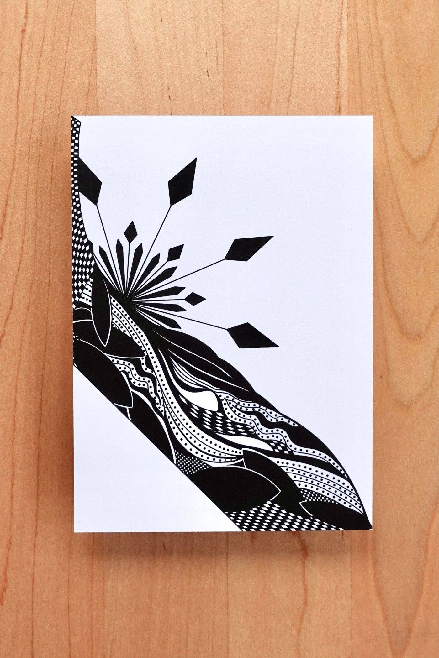 Rose Hollow Design es una empresa de papelería y diseño que ofrece tarjetas de notas planas (tarjetas de arte) de tamaño A6, tarjetas de felicitación plegadas tradicionales de tamaño A2, impresiones artísticas de tamaño 8 x 10 y formatos cuadrados centrados en la abstracción de tinta negra. La propietaria y artista Tanja Konwinski dibuja a mano cada diseño de su estudio con sede en Long Island City, basándose en sus más de 20 años como artista y creadora para ofrecer artículos de papel realmente impresionantes y únicos. La empresa se ha comprometido a no utilizar plástico en todos nuestros productos y empaques. Nuestras fundas son de celulosa compostable y todos los papeles cuentan con la certificación FSC y se reciclan al 100% siempre que sea posible. ¡Incluso la cinta adhesiva, las pegatinas decorativas de marketing y las etiquetas de envío de la empresa son reciclables en la acera! Nuestros productos se fabrican en los EE. UU., principalmente en Nueva York y Maryland, y estamos comprometidos con el planeta por encima de las ganancias y el producto en todo momento.