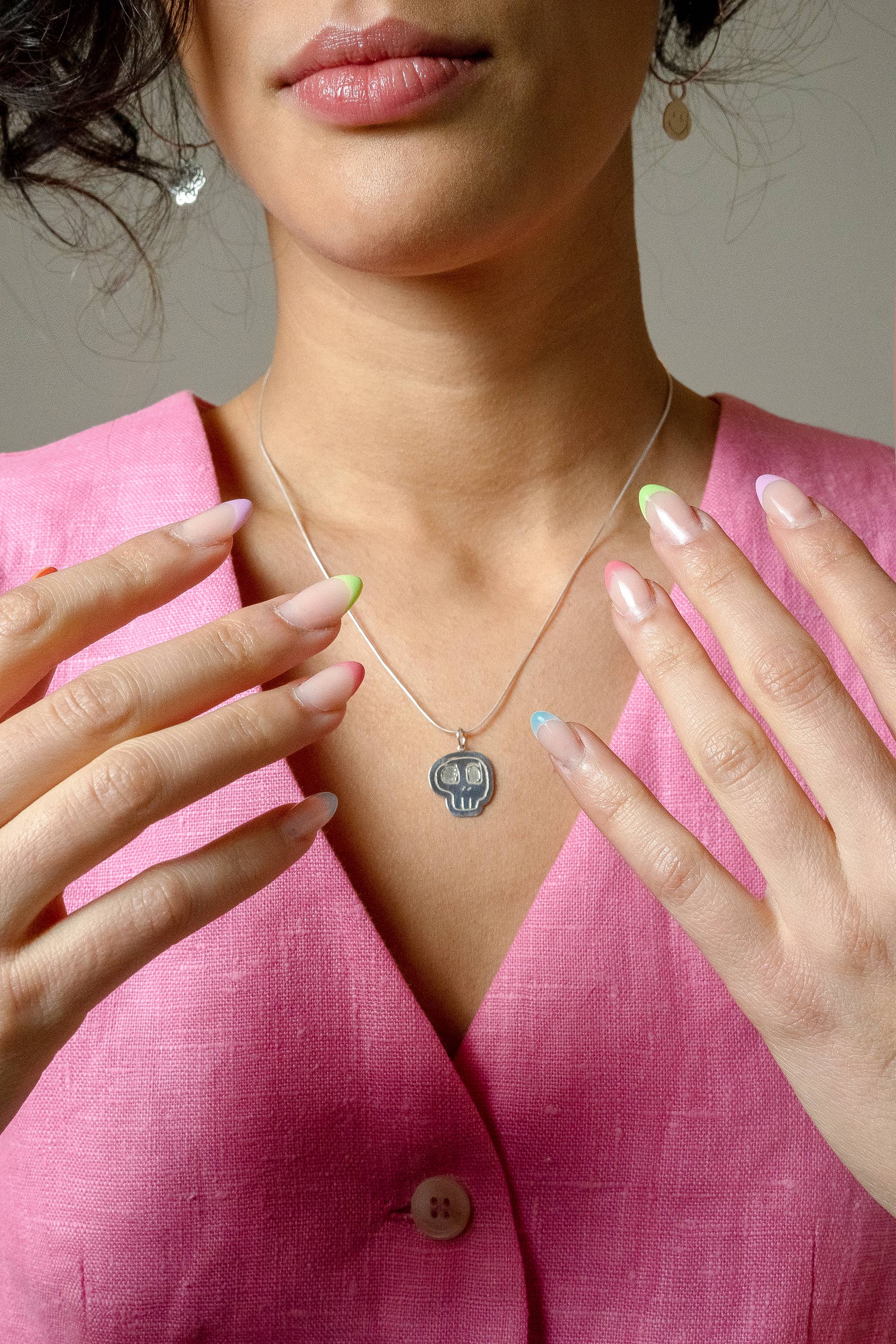 Skin Deep, es una marca de joyería fina que crea piezas coleccionables para el aquí, el ahora y el siempre. Fue fundada en 2015 por la diseñadora Marina Moldovan, inicialmente como una marca de moda lenta, que exhibe ropa básica y joyas artesanales inspiradas en su propia escritura a mano y experiencias personales. «Todo comenzó con un eslogan. Ya sabes, esas palabras que te llegan al azar, en las situaciones más inesperadas, como cuando golpeas una esquina de muebles con el meñique y dices: «¡Mierda!» — Es la intensidad del aquí y ahora condensada en este único eslogan. Luego, traducimos las palabras en una broma o metáfora que toma vuelo a medida que comienza a aplicarse a otras situaciones no relacionadas. De esta manera, las palabras se convierten en juegos de idiomas o simplemente en recordatorios íntimos del momento presente. Cuentan una historia privada y mística que puede que no sea fácil de entender, pero que aún se cuenta. Una manifestación condensada de auto brillo en tu piel». Este año, Skin Deep cambia su enfoque en la creación de joyas. Palabras escritas en plata u oro de 14 quilates, miniesculturas talladas a mano o anillos de compromiso clásicos diseñados para durar para siempre.