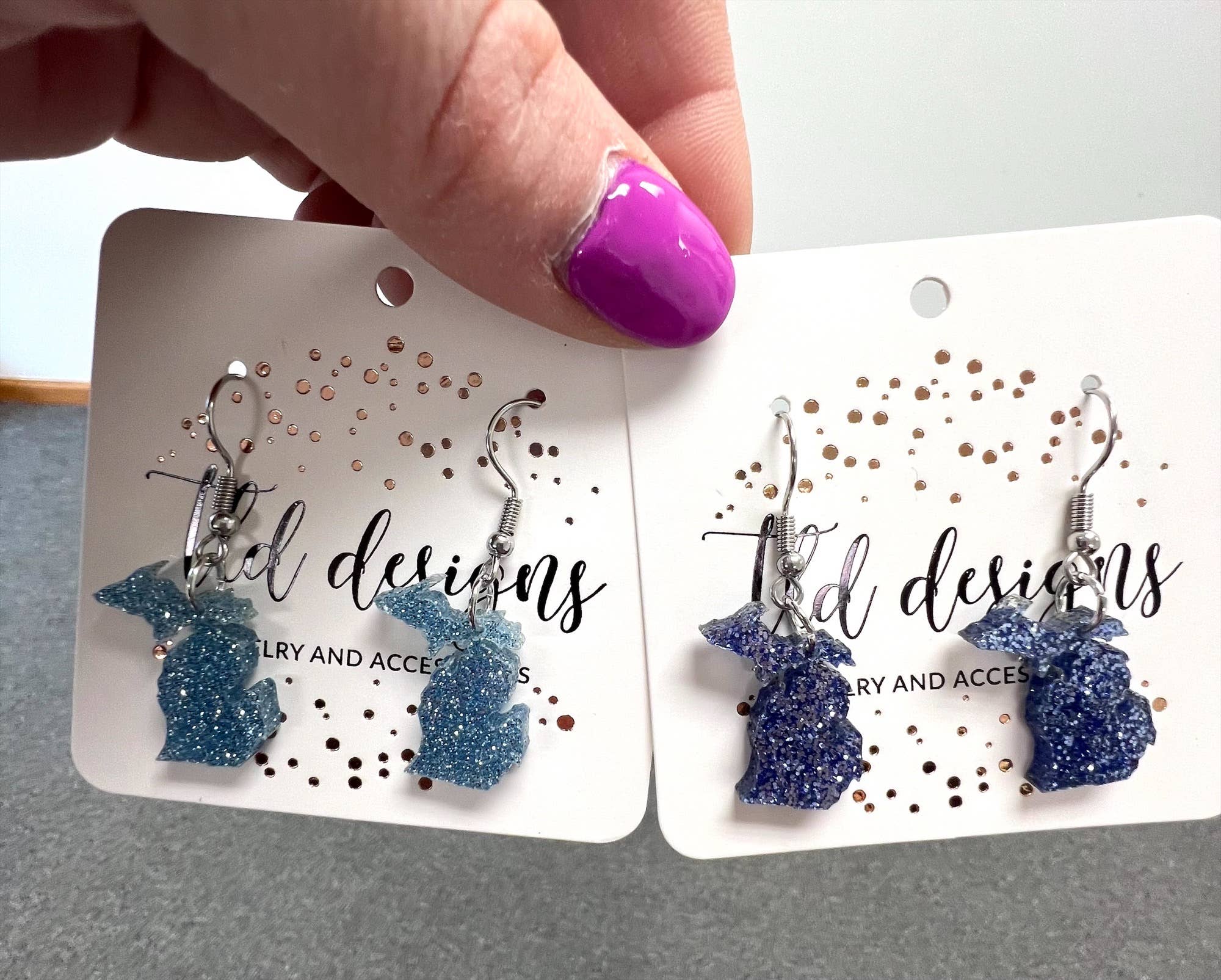 TLD designs es una empresa de joyas de fabricación propia. Nos especializamos en crear joyas hechas a mano de cuero, acrílico, madera y metal que ejemplifican estilos únicos y tendencias emergentes. Empezando por crear exclusivamente pendientes de cuero, ahora ofrecemos una variedad de collares, llaveros, joyas de metal, anillos y mucho más.