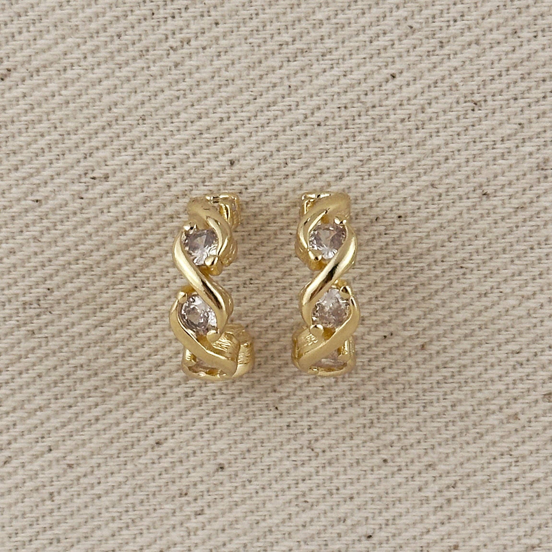 Estos elegantes pendientes de aro en C de oro relleno de 18K presentan un diseño de infinito adornado con brillantes piedras de circonita cúbica. Disponibles en sofisticado negro o en un rico verde esmeralda, estos pendientes cuentan con cierres seguros y una artesanía de primera calidad. La construcción duradera de oro relleno ofrece una belleza duradera, mientras que las brillantes piedras de CZ añaden el toque perfecto de glamour a cualquier atuendo. Un accesorio versátil que pasa sin esfuerzo del día a la noche. * Metal: Oro relleno de 18k * Diámetro de 15 mm * Hipoalergénico * Resistente al agua * Hecho a mano en Brasil