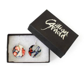Las ramas oscuras y las inserciones contrastantes de color naranja mandarina brillante de los capullos de colores crean un contraste complementario con el fondo plateado. Con insertos con una presencia ardiente de color verde neón en el diseño, dan vida a las ramas. Par de pendientes de aluminio con trabilla de alambre de plata de ley maciza, se entregan en una caja de regalo negra. Este juego de pendientes «Tangerine Branch» es un complemento elegante para cualquier atuendo. Estos hermosos pendientes de inspiración botánica incluyen un precioso diseño floral y colores llamativos. Hecho a mano en el Reino Unido. Dimensiones de los pendientes redondos: 0.75 pulgadas Dimensiones de los pendientes de barra: 1.25 x 0.5 pulgadas