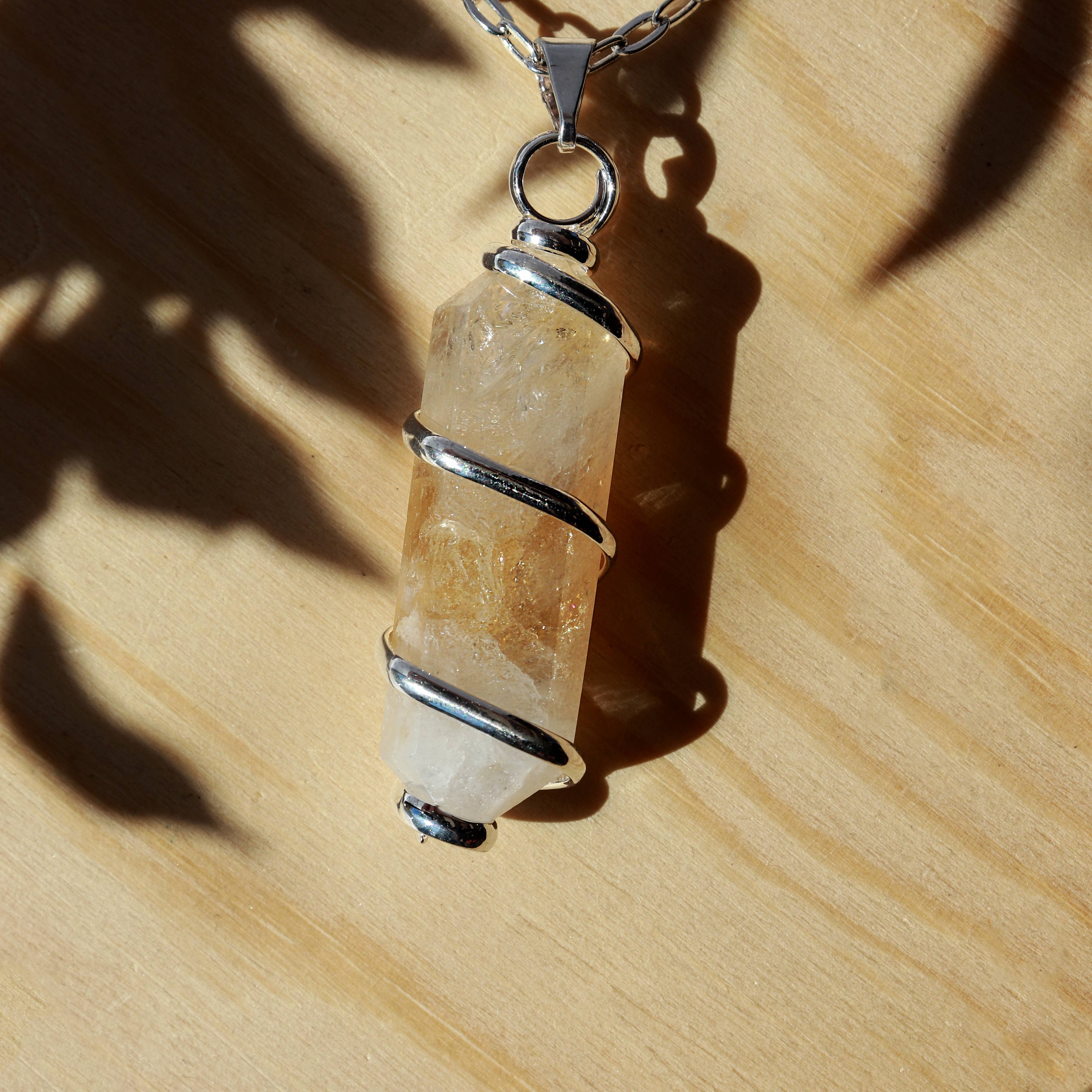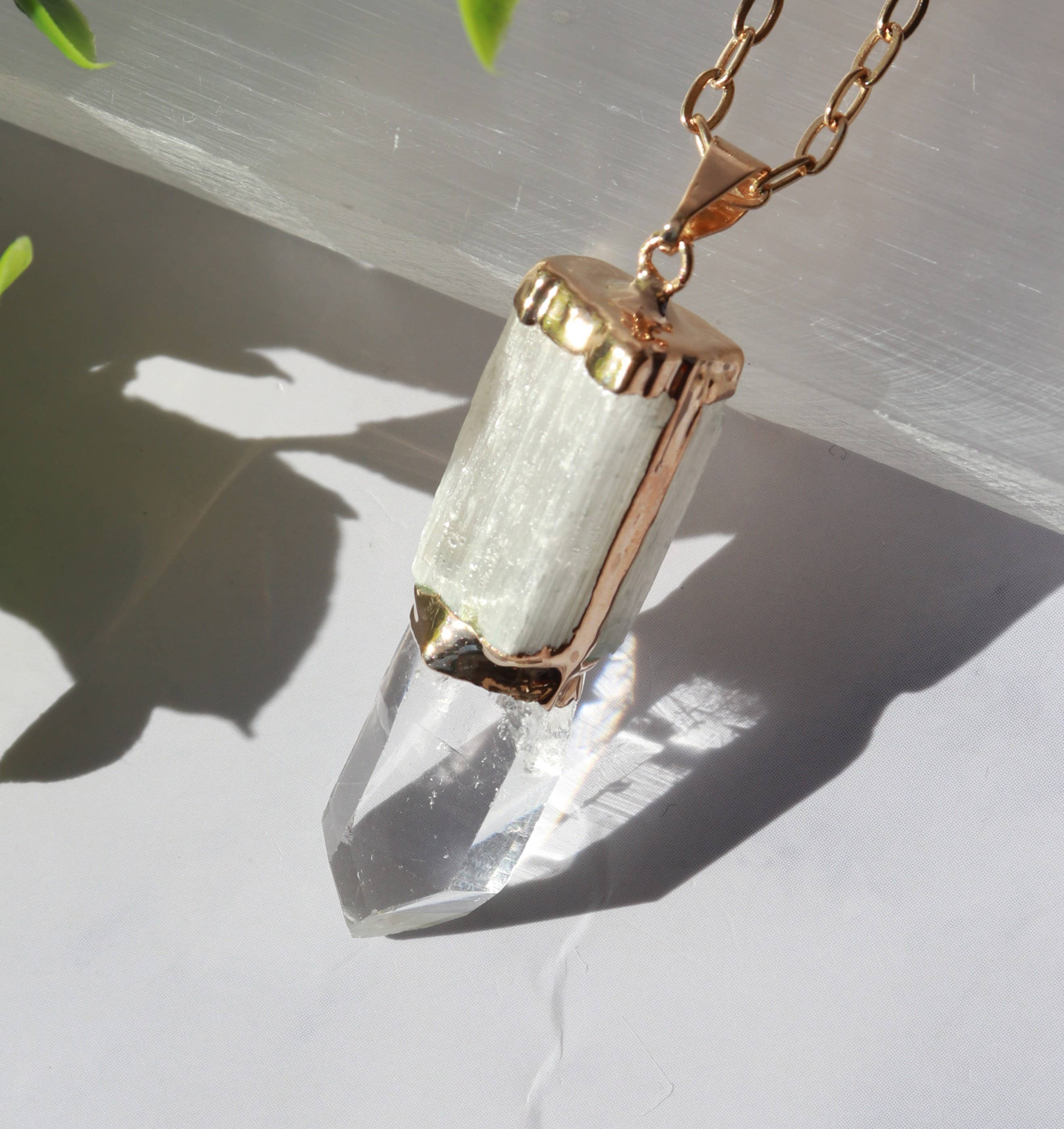 Colgante de selenita con punta de cristal chapado en oro
