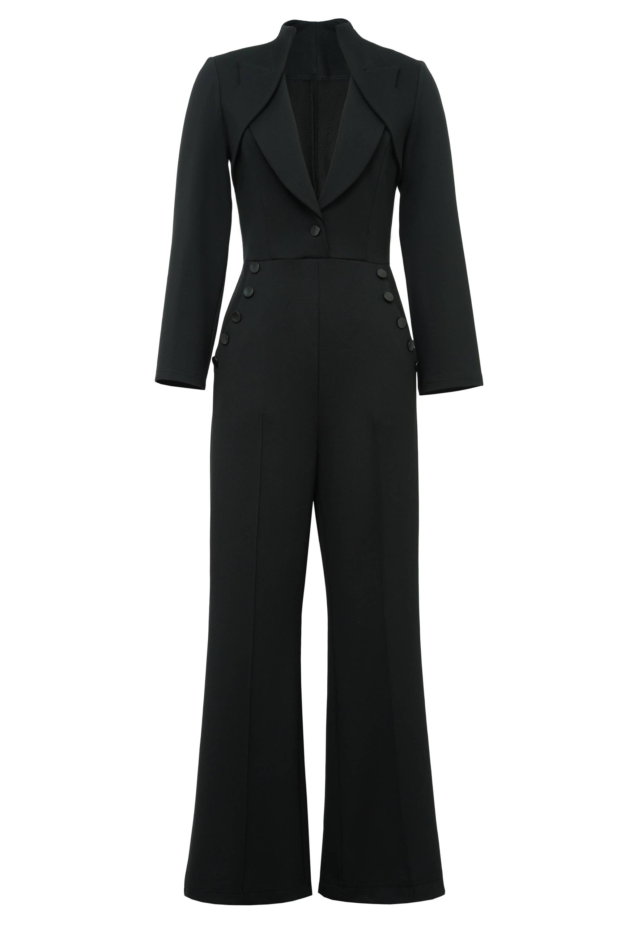 Mono negro con cinturón de lino con un solo botón, talla grande, de Chic Star al por mayor