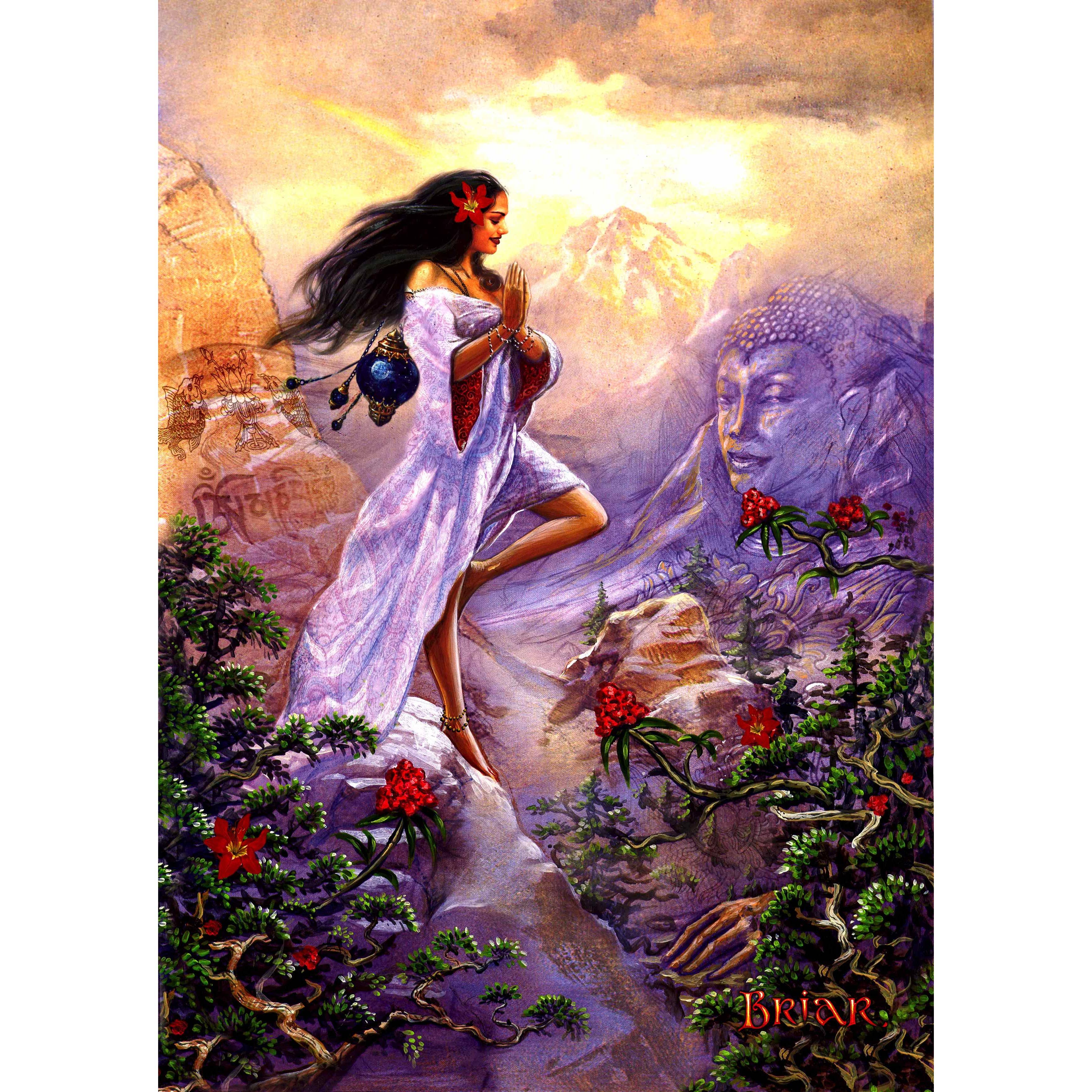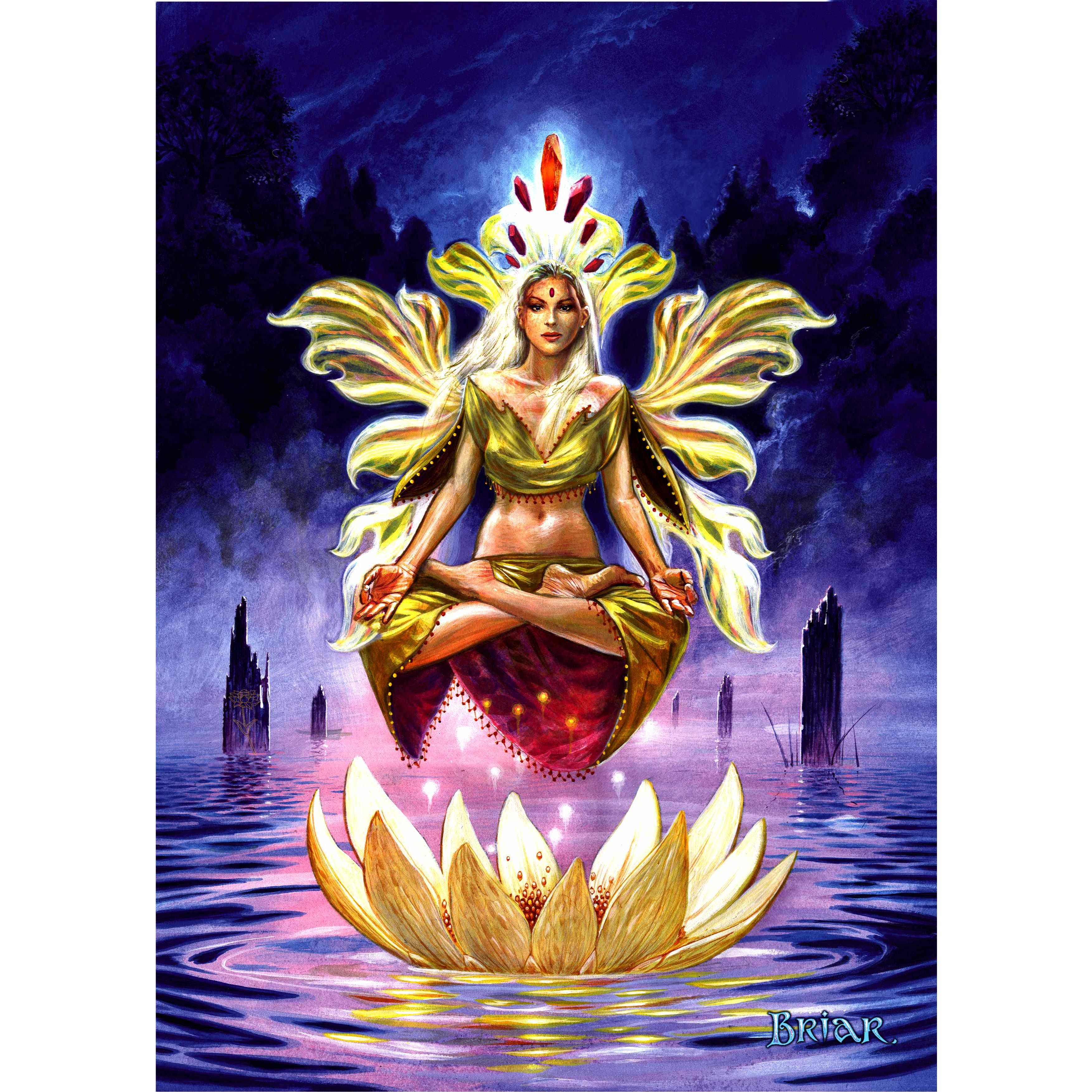 Briar, uno de los principales artistas de fantasía de Inglaterra, nos recuerda pedir un deseo cuando apagamos una vela, ya que un hada puede conceder el deseo de nuestro corazón. La imagen es una impresión en A4, la sección visible mide 29,1 cm x 20,3 cm y está montada en un tablero A3, pudiendo exhibirse con o sin marco.