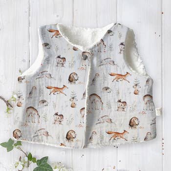 Aún no hay opiniones sobre Chaleco Ella en Beige Papel reversible de terciopelo acolchado.