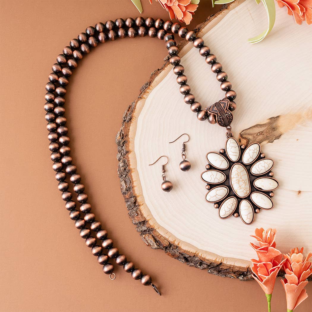 Pendientes de Flor de Calabaza - Piedra Turquesa con Gancho de Pescado