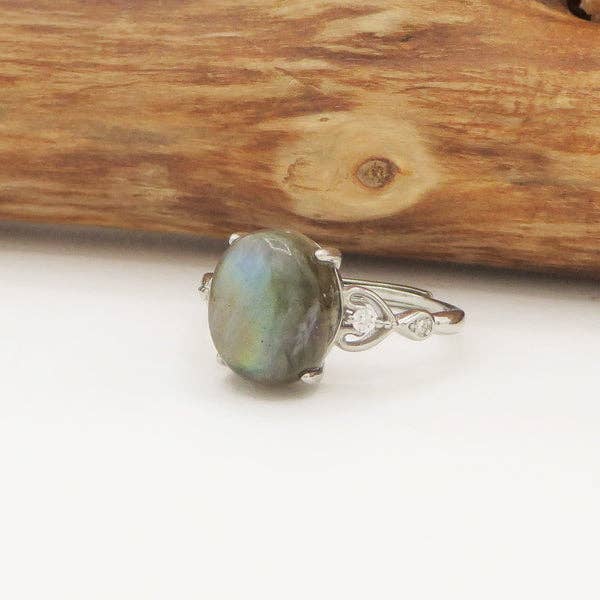 BOHEMIAN CHAAYA ~ Anillo ajustable con piedra lunar gris de 10 mm, piedra lunar gris natural