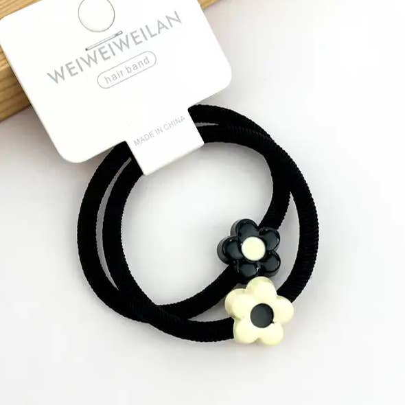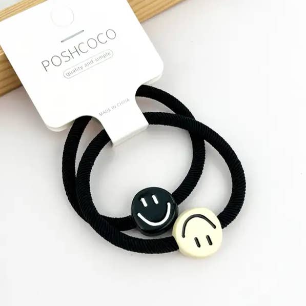 Set de 2 ligas para cabello elásticas con flor, corazón y carita sonriente al por mayor