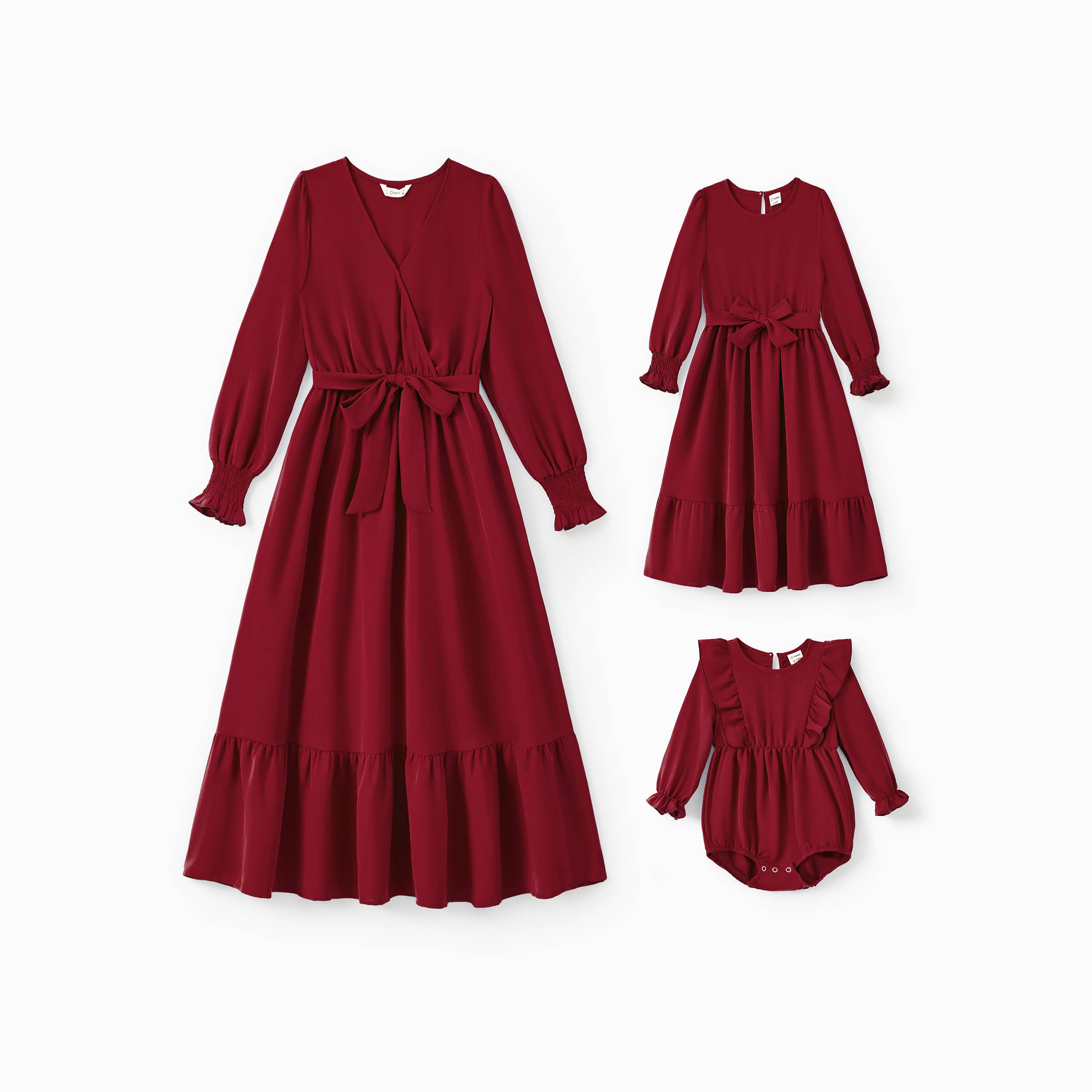 Conjunto de Vestidos a Juego Azul Marino para Mamá e Hija Diseño: ¡Elegancia coordinada en azul marino! - Mamá: Vestido midi cruzado con cintura con cinturón y mangas abullonadas – fluido, elegante y fácil de combinar. - Niña: Vestido con cintura de lazo y volantes para un dulce look a juego con mamá. - Bebé: Pelele con volantes, lindo y cómodo para tu pequeño. Material: 100% Poliéster. Tejido ligero y opaco que garantiza comodidad durante todo el día. Ocasión: Perfecto para fotos familiares, fiestas o ocasiones especiales – ¡brilla en estilo a juego azul marino! 【Nota Importante】 - Añade cada talla por separado al carrito: → Talla de mamá (vestido midi) → Talla de niña (vestido con cintura de lazo) → Talla de bebé (pelele con volantes) - Pieza: 1 pieza por talla. ¡Crea momentos eternos de madre e hija con este conjunto clásico!