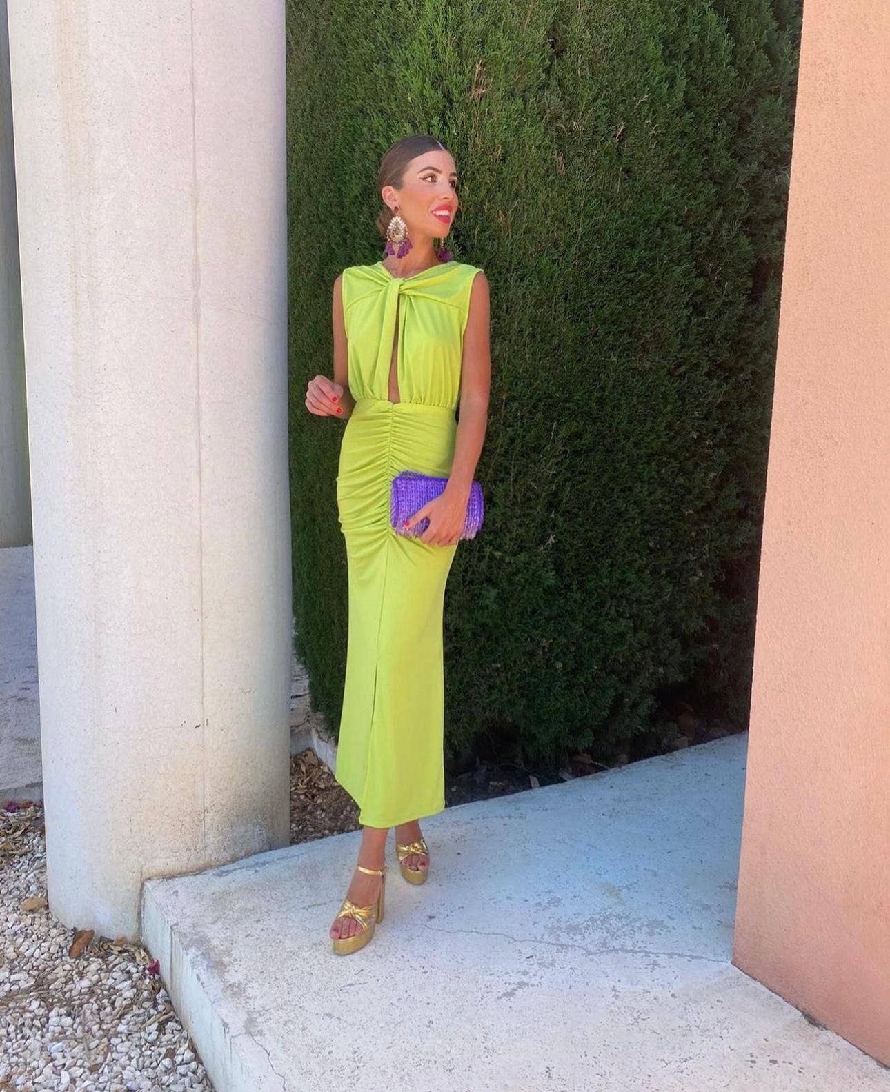Vestido largo confeccionado en material de satén. Disponible en tres tallas: S, M y L.