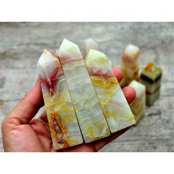 Torre de ónix con bandas rosadas (70 g - 180 g)
