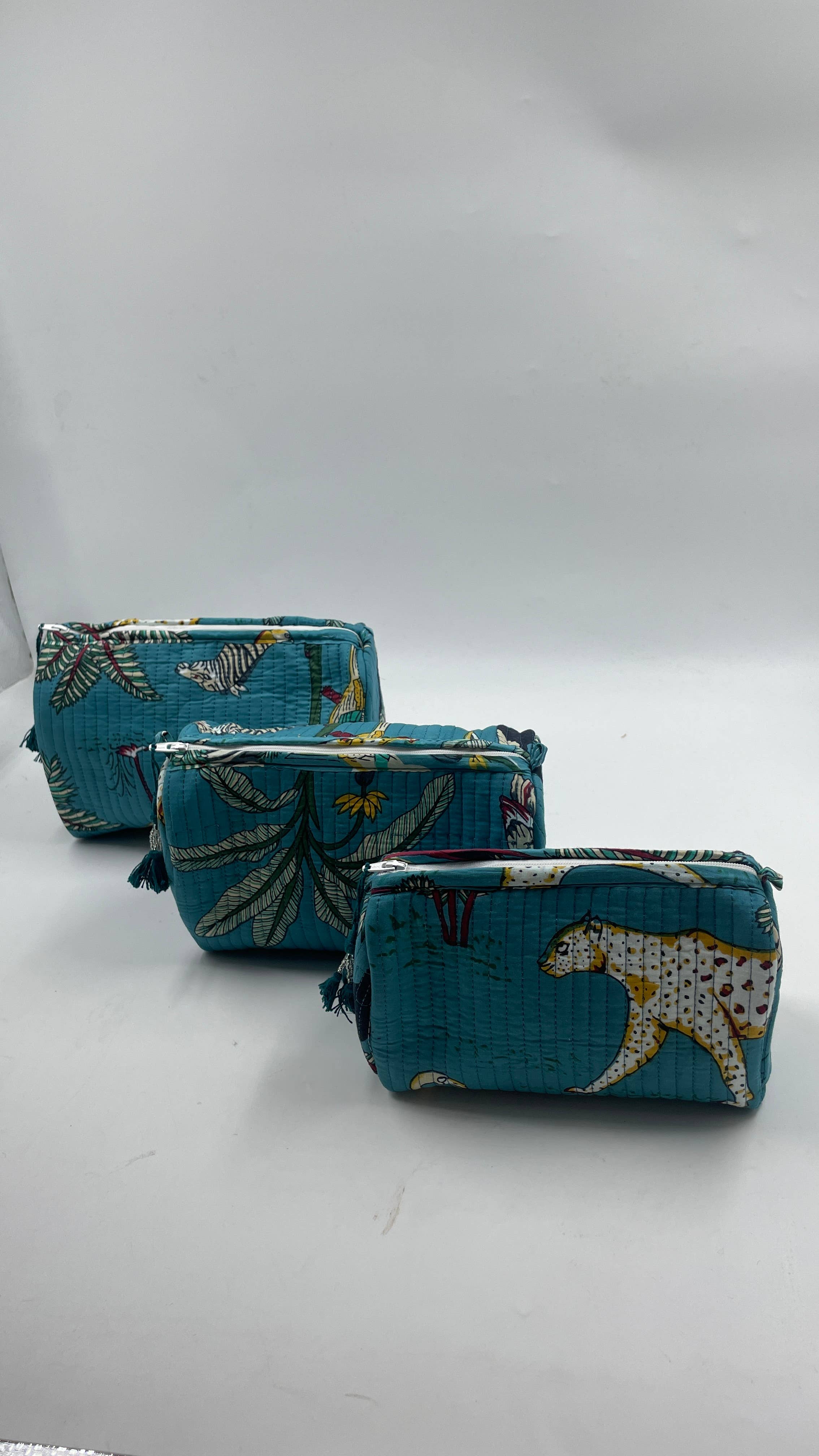 Juego de 3 neceseres acolchados 100% algodón: pequeño, mediano y grande.