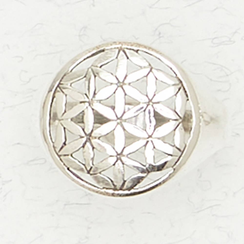 FLOR DE LA VIDA La Flor de la Vida está compuesta por siete o más círculos equidistantes que se superponen, formando un patrón floral con simetría de seis lados similar a un hexágono. Se considera un símbolo de geometría sagrada y se dice que contiene un valor religioso ancestral que representa las formas fundamentales del espacio y el tiempo, actuando como un tipo de Registro Akáshico con información básica de todos los seres vivos. Este símbolo se encuentra a lo largo de la historia en manuscritos, templos y obras de arte en todo el mundo. El templo de Osiris en Abydos, Egipto, alberga lo que se presume es el ejemplo más antiguo, con al menos 6.000 años de antigüedad. Figuras tan prominentes como Leonardo da Vinci atribuyeron importancia a la Flor de la Vida y a tres símbolos similares llamados “Huevo de la Vida”, “Fruto de la Vida” y “Semilla de la Vida”. Plata de Ley. Hecho en Tailandia.