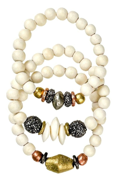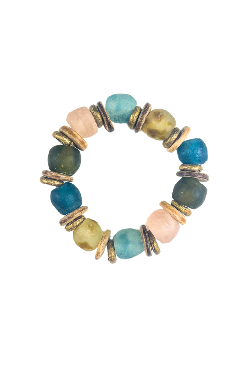 La pila tribal de Twin&Twine está diseñada con cuentas de origen mundial. Se pueden usar individualmente o apilarse. Se adapta al tamaño de muñeca 17,78 cm.