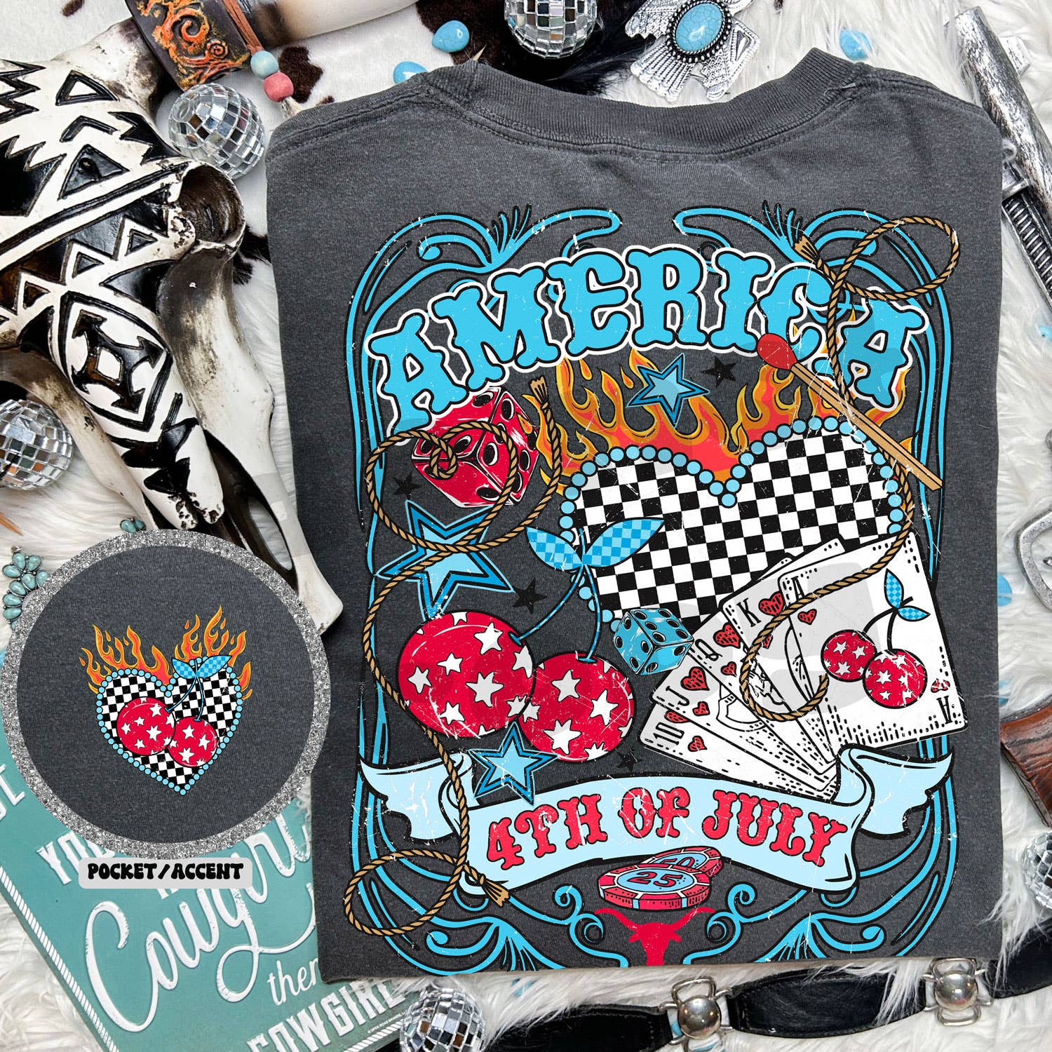 Camiseta teñida con pigmento oceánico con parche de lentejuelas de EE. UU.