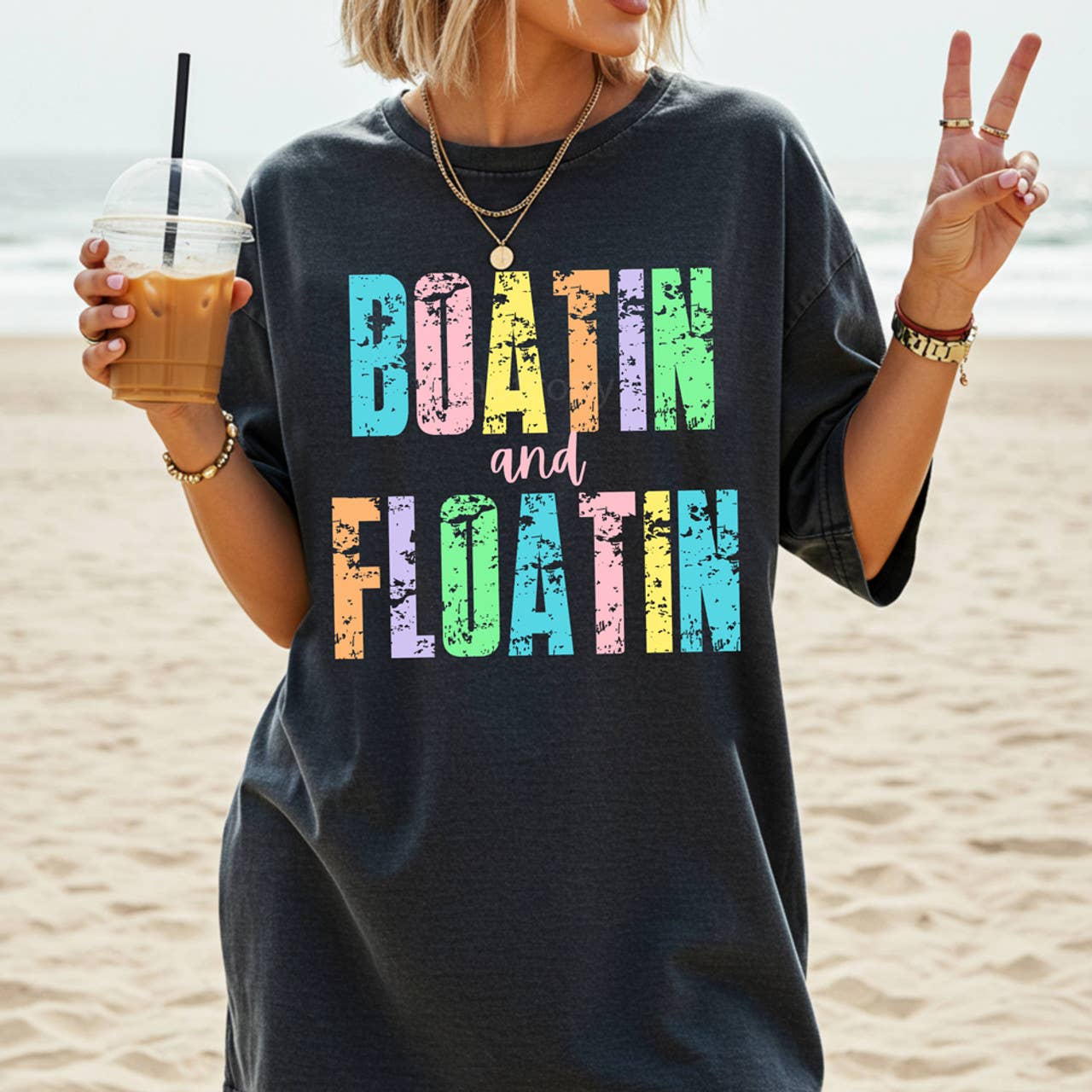 Camiseta teñida con pigmento oceánico con parche de lentejuelas de EE. UU. al por mayor