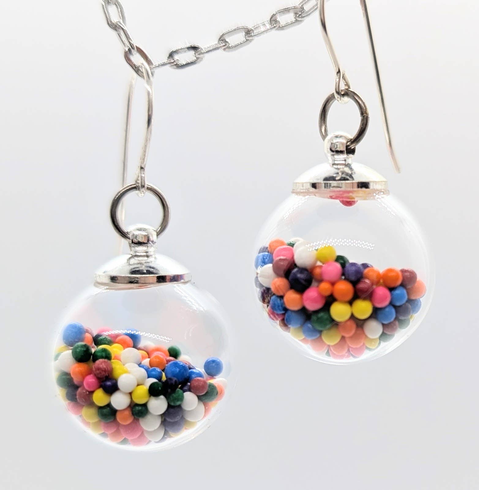 Fieltro de lana sostenible cortado con láser y colgado de ganchos de plata de ley. Disponible en negro, gris, azul, verde, naranja, rojo y magenta. Mostrado en naranja. Muy ligero. Círculos de 1,25".