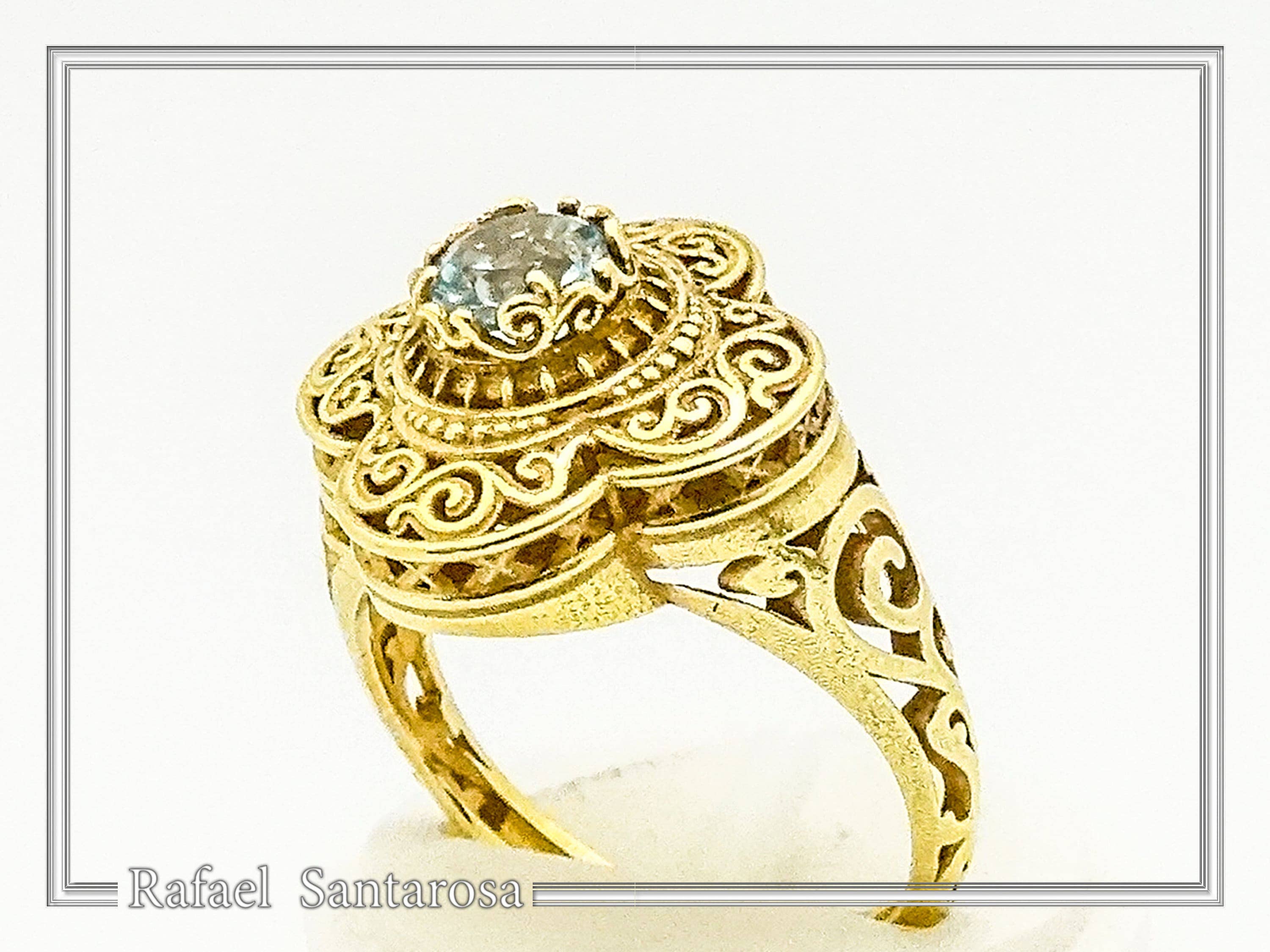 Anillo Meander con decoración de llave griega serpenteante en plata de ley maciza oxidada. Un anillo de plata con el diseño del meandro griego o llave griega. El meandro griego es un símbolo griego antiguo que tiene una serie continua de rectángulos que van y vienen uno sobre el otro. Esto simbolizaba la eternidad y la larga vida. El anillo Meander de plata de ley está fabricado con plata de excelente calidad por expertos joyeros. Un anillo diseñado por Rafael Santarosa basado en el antiguo símbolo de la prosperidad eterna.