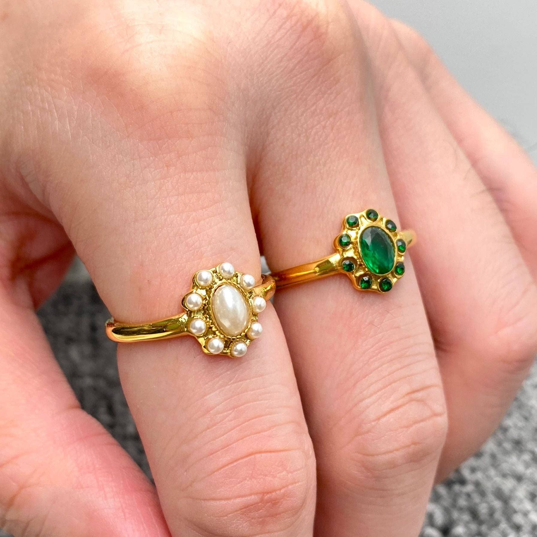 Anillo vintage con perla incrustada y baño de oro 18K en acero inoxidable - Mio Queena al por mayor