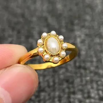 Tipo: Anillo Material: acero inoxidable, perla de agua dulce, baño de oro 18K Proceso: electrochapado al vacío y pulido manual, no se oxida Superficie: alto brillo ★ Fabricado con acero inoxidable de alta calidad, sin plomo y seguro para el cuerpo humano. ★ Perfecto como regalo de joyería