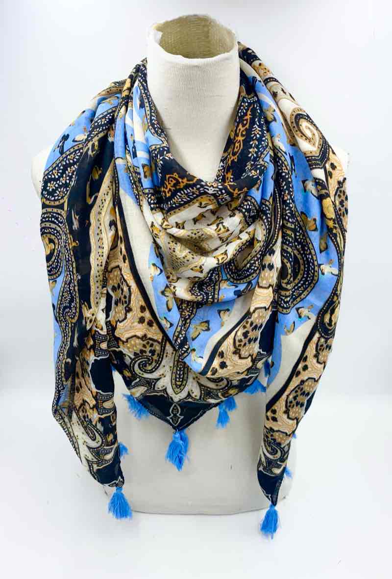 Encuentra nuestra bufanda cuadrada atemporal en un material muy suave, con sus estampados modernos y coloridos. Modelo mixto, para llevar alrededor del cuello Tamaño 130 x 130 cm Composición 100% viscosa