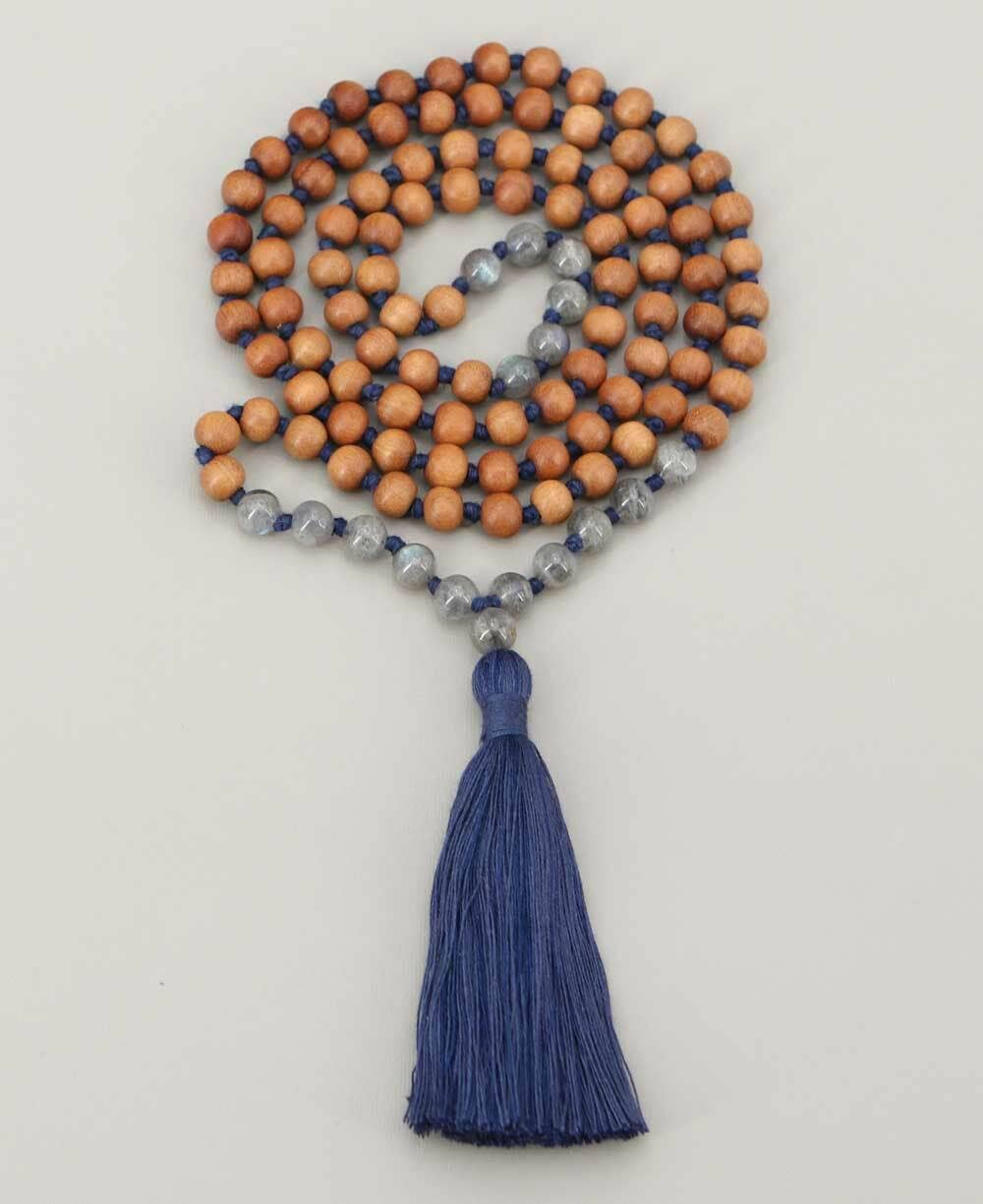 Labradorita y sándalo 108 cuentas meditación Mala