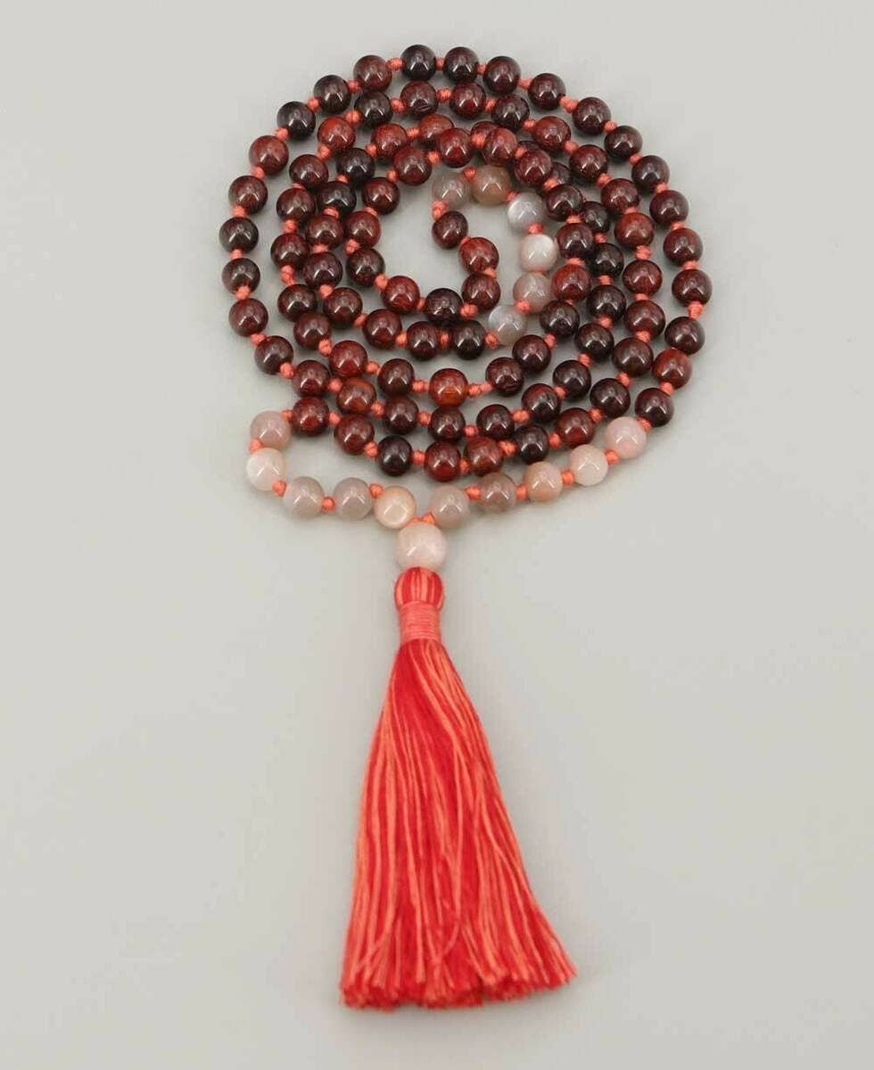 Lava y sándalo 108 cuentas de meditación Mala, anudado