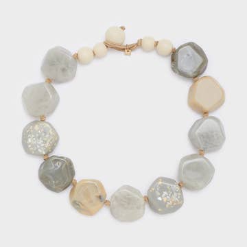 Fresco con un giro audaz, este collar hecho a mano reimagina la forma del sol en un formato sobredimensionado con flecos fluidos. Los tonos menta aportan ligereza y contraste, creando una pieza llamativa que se siente moderna e inesperada.