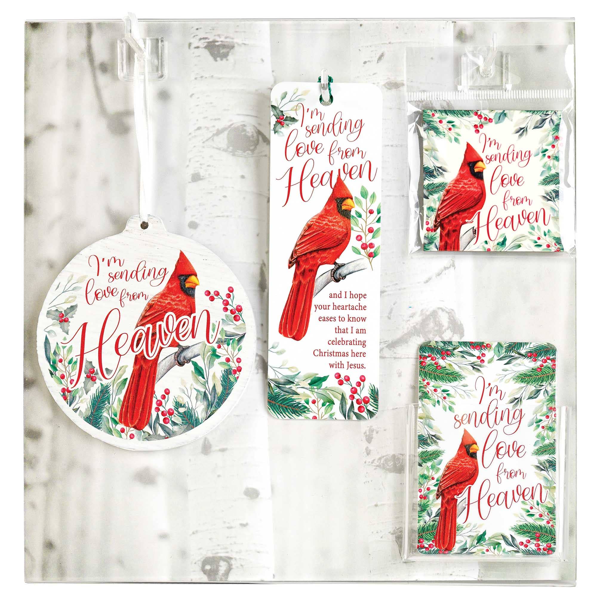 Cuelgue este atrapasol en cualquier ventana; la luz del sol que se filtra a través del vidrio texturizado acentúa el colorido cardenal y las palabras «Estoy enviando amor desde el cielo». Acabado con marco de metal plateado y cadena colgante; ventosa transparente incluida. El tamaño es de 6" de diámetro. Viene en una caja con ventana, listo para regalar.