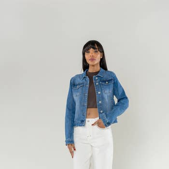 Eleva tu estilo de prendas exteriores con esta chaqueta vaquera bordada con flores y cinturón, confeccionada en resistente denim de algodón. Con bordados florales blancos en el cuello, los hombros, los puños y las mangas, esta pieza combina utilidad con un toque suave y femenino. El ajuste relajado y holgado y el cinturón de cintura desmontable permiten un estilo versátil, desde un look estructurado abotonado hasta capas abiertas. Combínala con faldas maxi o looks de denim sobre denim para una declaración fresca. * Altura: 80 cm * Pecho: 106 cm * Largo de manga: 54 cm