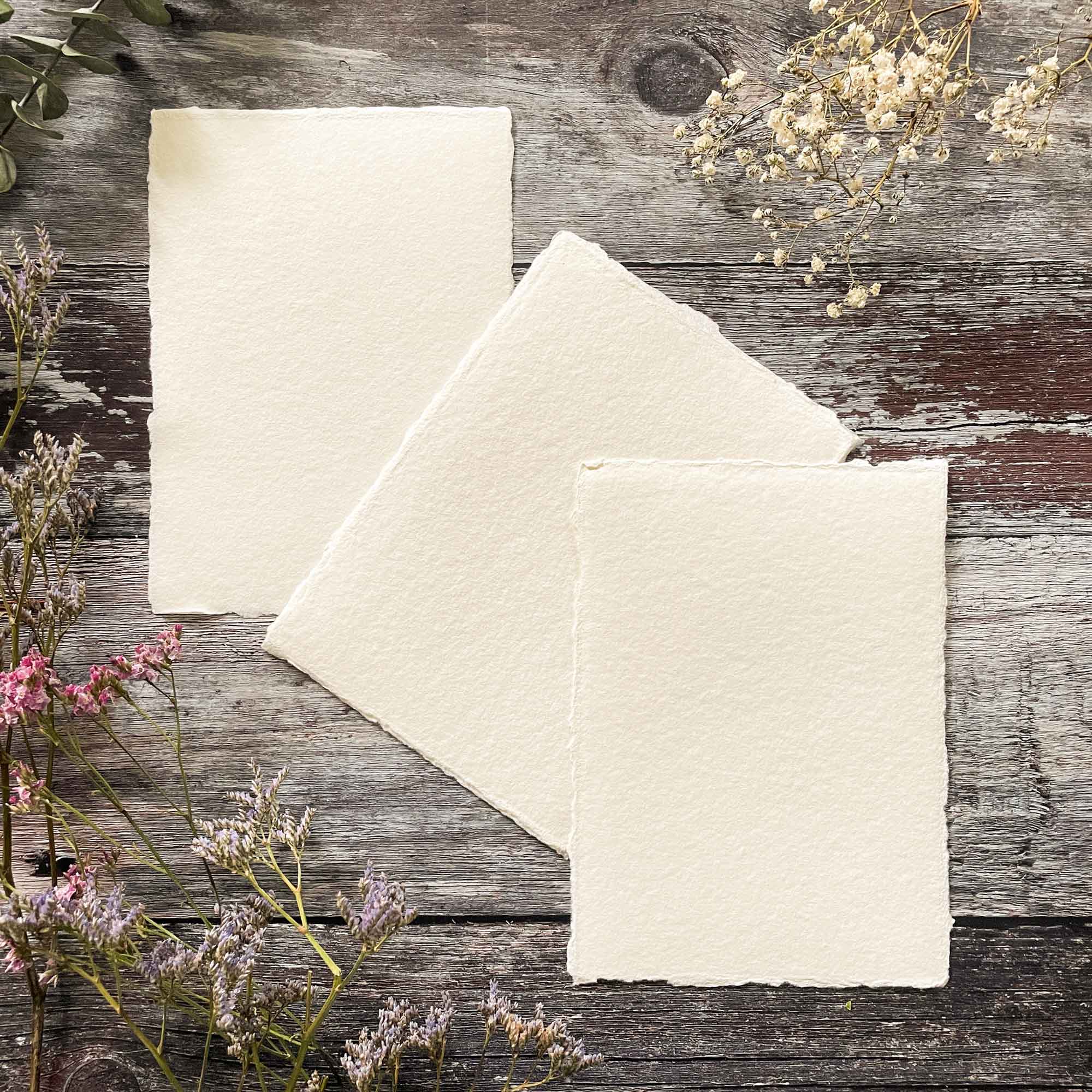 La tarjeta hecha a mano no solo tiene un aspecto hermoso, sino que también es amable con nuestro planeta. Esta tarjeta hecha a mano de alta calidad está hecha de un trapo de algodón 100% de fibra larga. No contiene ácidos (por lo que no amarillea con el paso del tiempo). No se utilizan productos químicos agresivos en su producción, por lo que se trata de un papel que mantendrá su integridad durante muchos años. Tiene una superficie de rugosidad media bellamente texturizada. El borde adornado añade encanto a este papel. Esta es una tarjeta popular para pinturas de acuarela y arte con técnicas mixtas. También es ideal para artículos de papelería de boda hechos a mano y otros medios de pintura y dibujo. 320 g/m² Un bonito color blanquecino natural. Disponible en varios tamaños de la siguiente manera: Hojas individuales A6 (11 cm x 15 cm) A5 (15 cm x 21 cm) Cuadrado (20 cm x 20 cm) A4 (21 cm x 30 cm) A3