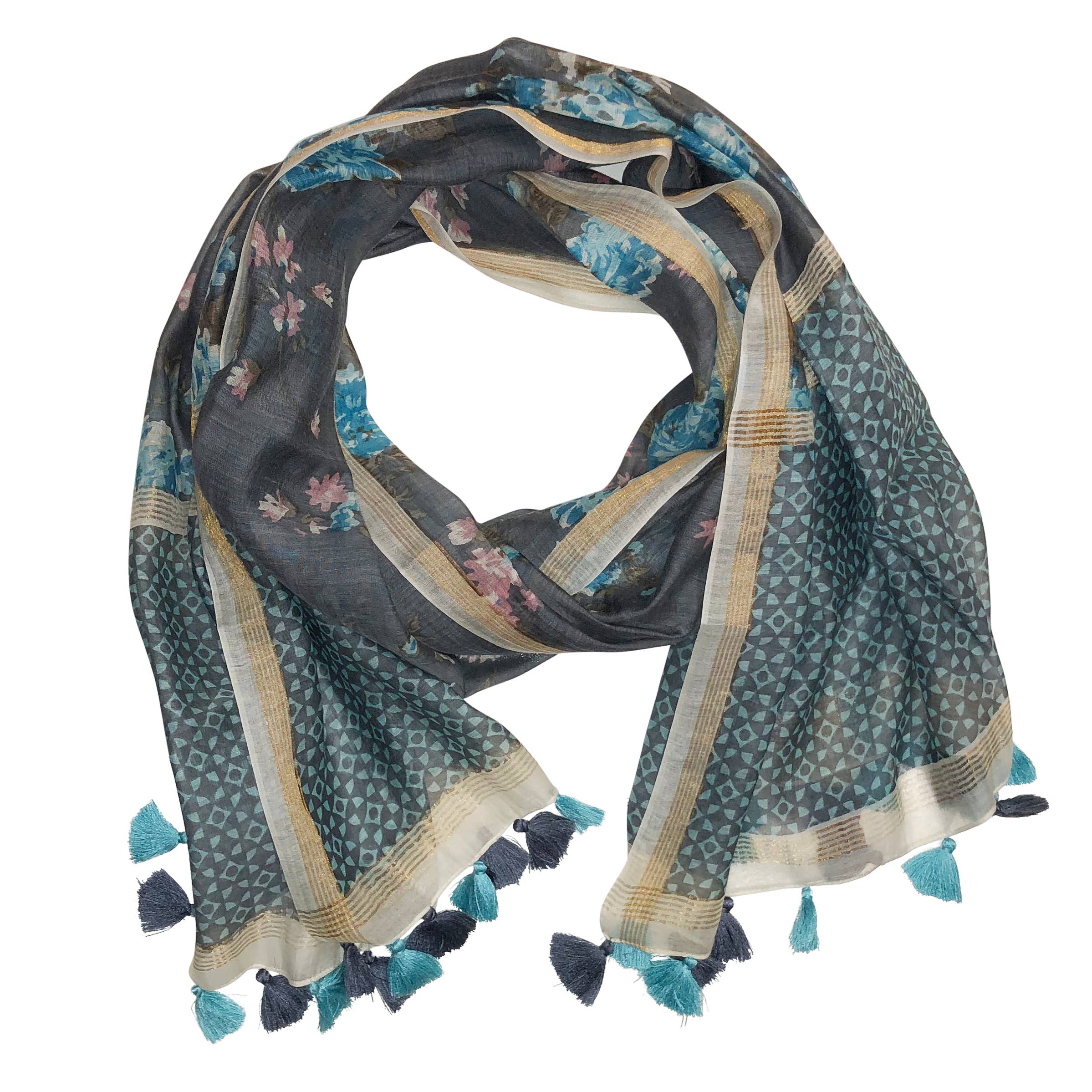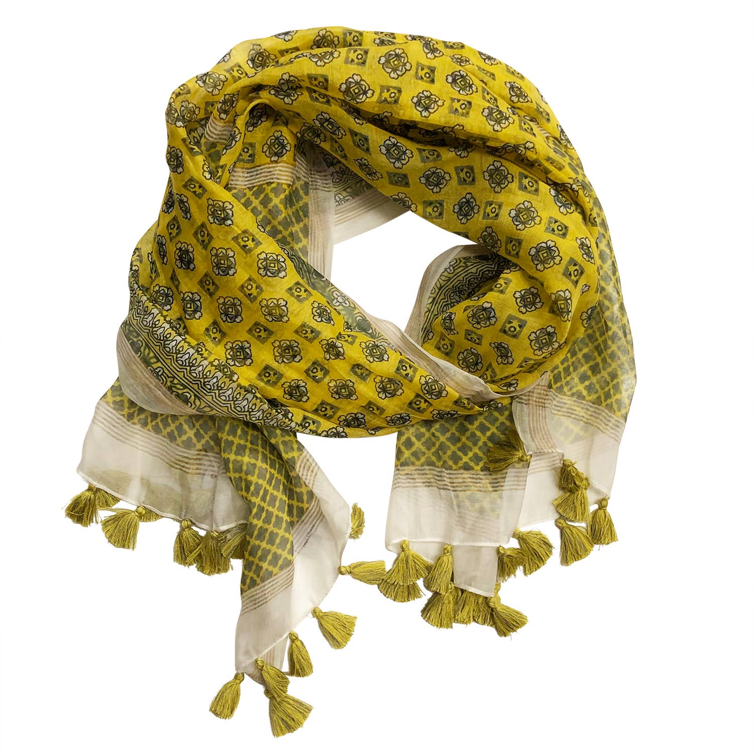 Bufanda Milana de algodón puro suave con flecos amarillos para mujer