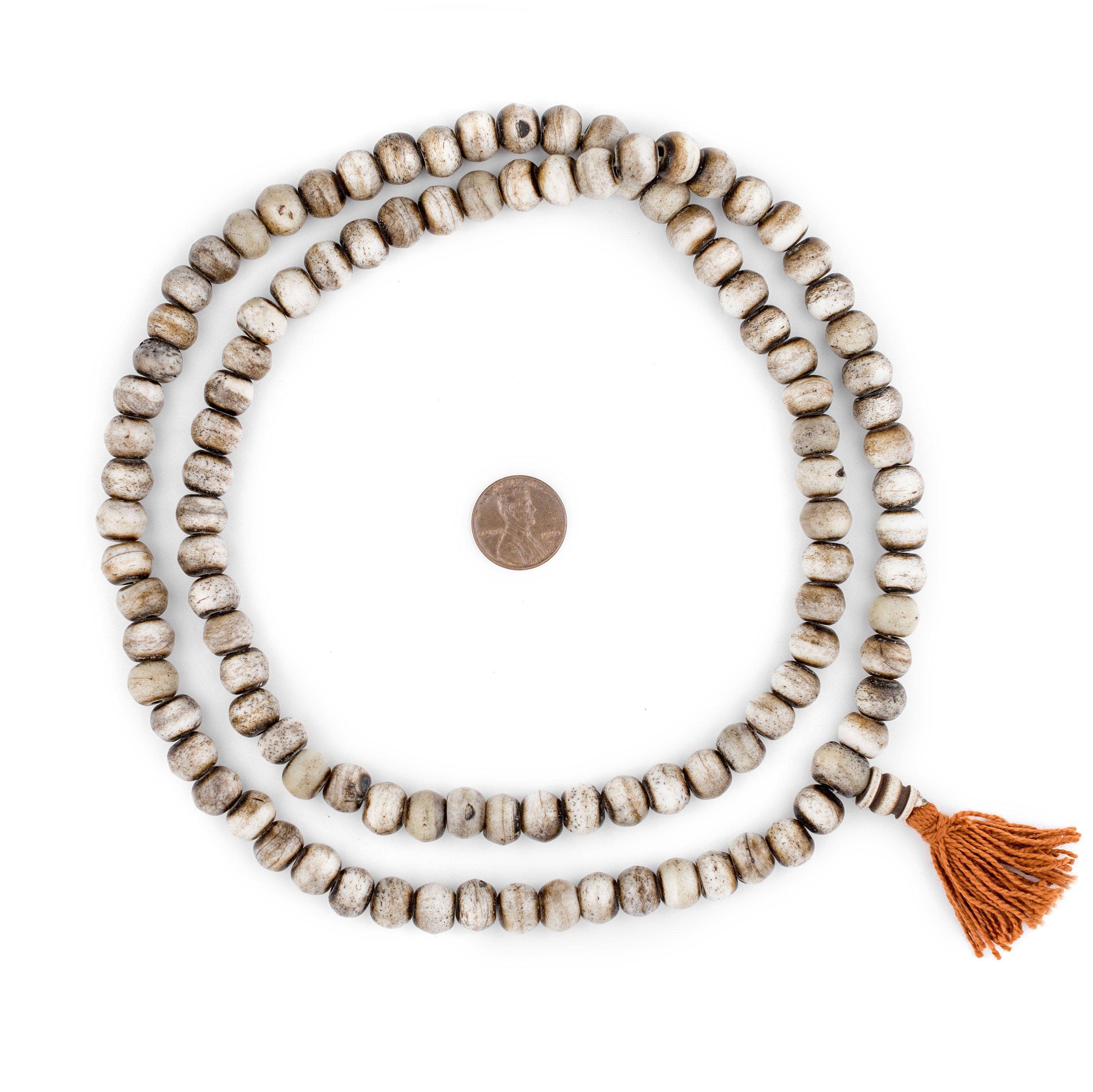 Echa un vistazo a esta hermosa cadena de cuentas de platillo de vidrio Ashanti de color blanco. El proceso de fabricación de estas cuentas es exclusivo de África y se ha utilizado durante más de 1000 años. Se vierte vidrio pulverizado de varios colores en un molde de arcilla, utilizando un tallo de yuca para el orificio de la cuenta. El molde se coloca en un horno y se calienta hasta que las partículas de vidrio se congelan sin fundirse realmente y el tallo se quema. Los ghaneses han estado fabricando cuentas de esta manera desde el siglo XVII.