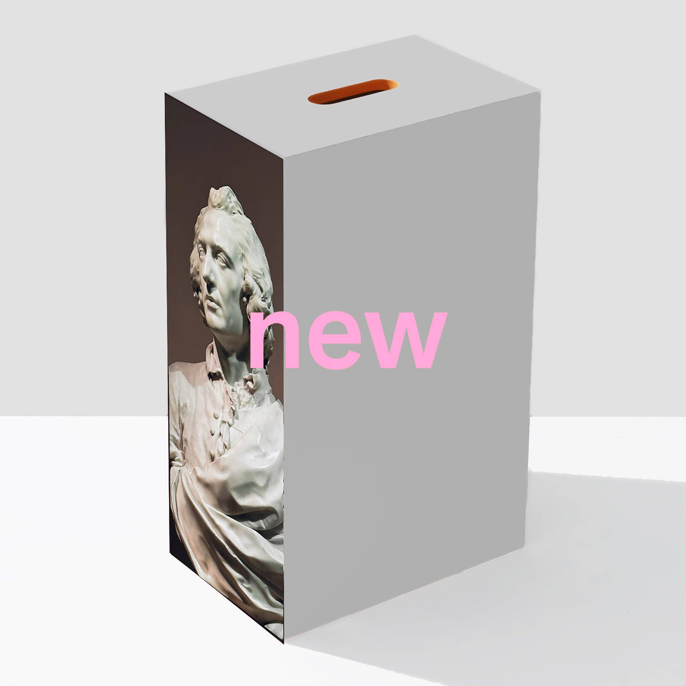 La serie de fotografía -Ilan Rubin Impresión por sublimación de tinta en aluminio. De archivo, duradera, montada en la Apple Box. Genevieve-Francoise Randon 1768 por Lemoyne La Apple Box es una vista familiar en los sets de cine y fotografía, una herramienta versátil que se utiliza sin fin como asiento, escalera, mesa, pedestal. La hemos elevado al estatus de ícono, como Le Corbusier, pero representándola en contrachapado de abedul báltico con color rico en todos los lados. Esta forma simple evoca el minimalismo elegante de Judd y la paleta de Barragán. Úsala donde sea útil. Hecho a mano en EE. UU. Características del producto: Versátil, apilable, mesa auxiliar, escalera y más. Contrachapado de abedul báltico en gris claro. Una caja de contrachapado de abedul báltico de seis lados, con un asa recortada redondeada. Cinco paneles de un color y el sexto de otro. Dimensiones: Ancho 12" x Largo 8" x Alto 20" Peso: 13LB Materiales: Contrachapado de abedul báltico, pintura, impresión por sublimación de tinta Genevieve en aluminio. El tiempo de entrega es de cuatro a seis semanas.