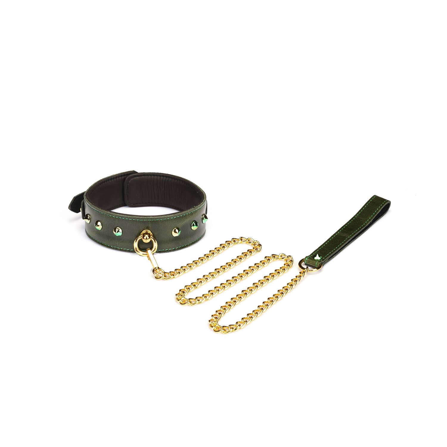 Colección de piel de vaca verde de lujo Cuero encerado al óleo de primera calidad con brillantes piedras preciosas: deja que este diseño único despierte tu imaginación, explora tu sexualidad y disfruta de experimentos eróticos con tu pareja. Especificaciones: Número de artículo: FG-80858GR Material: cuero de vaca Longitud: 45 cm/17,7 pulgadas