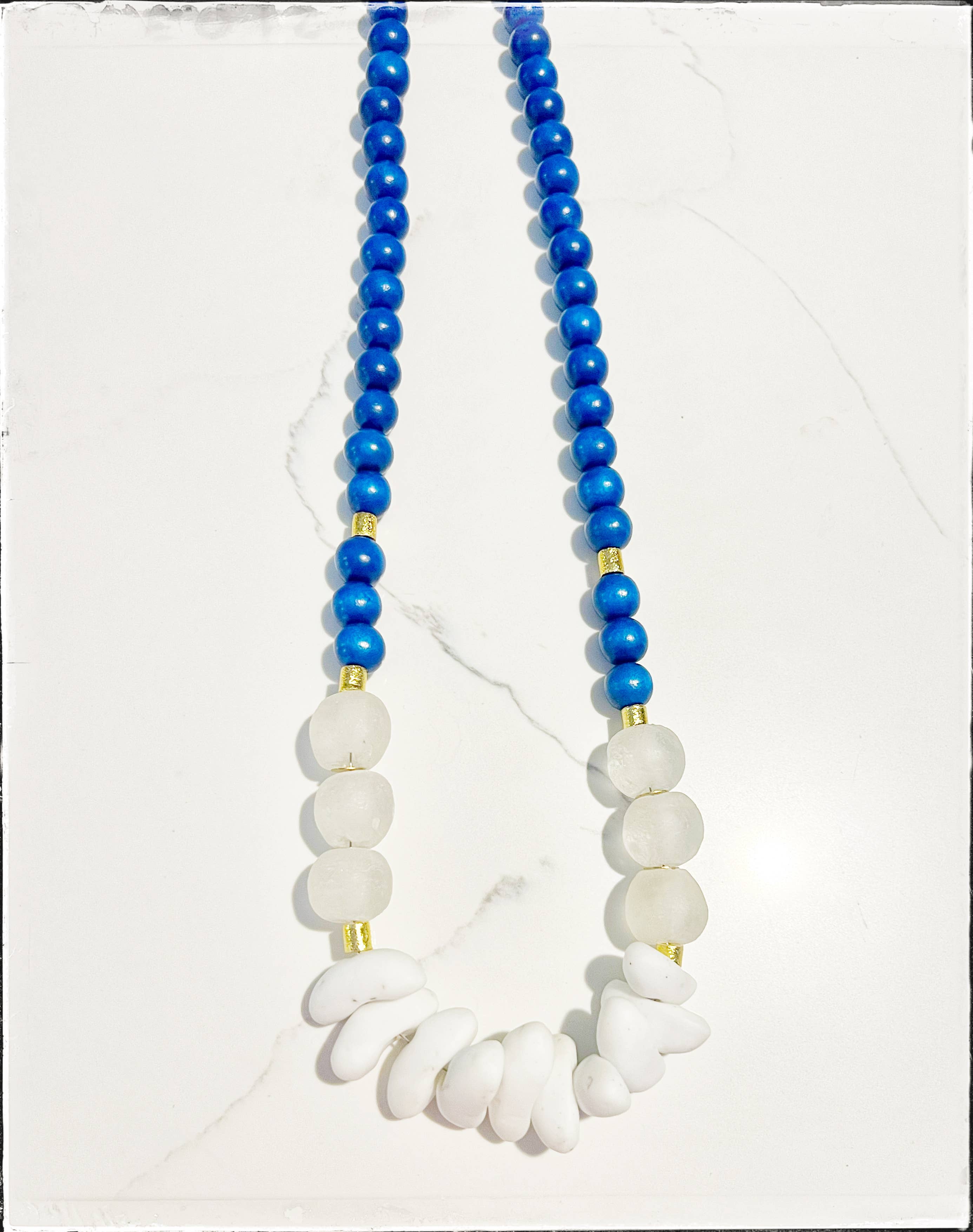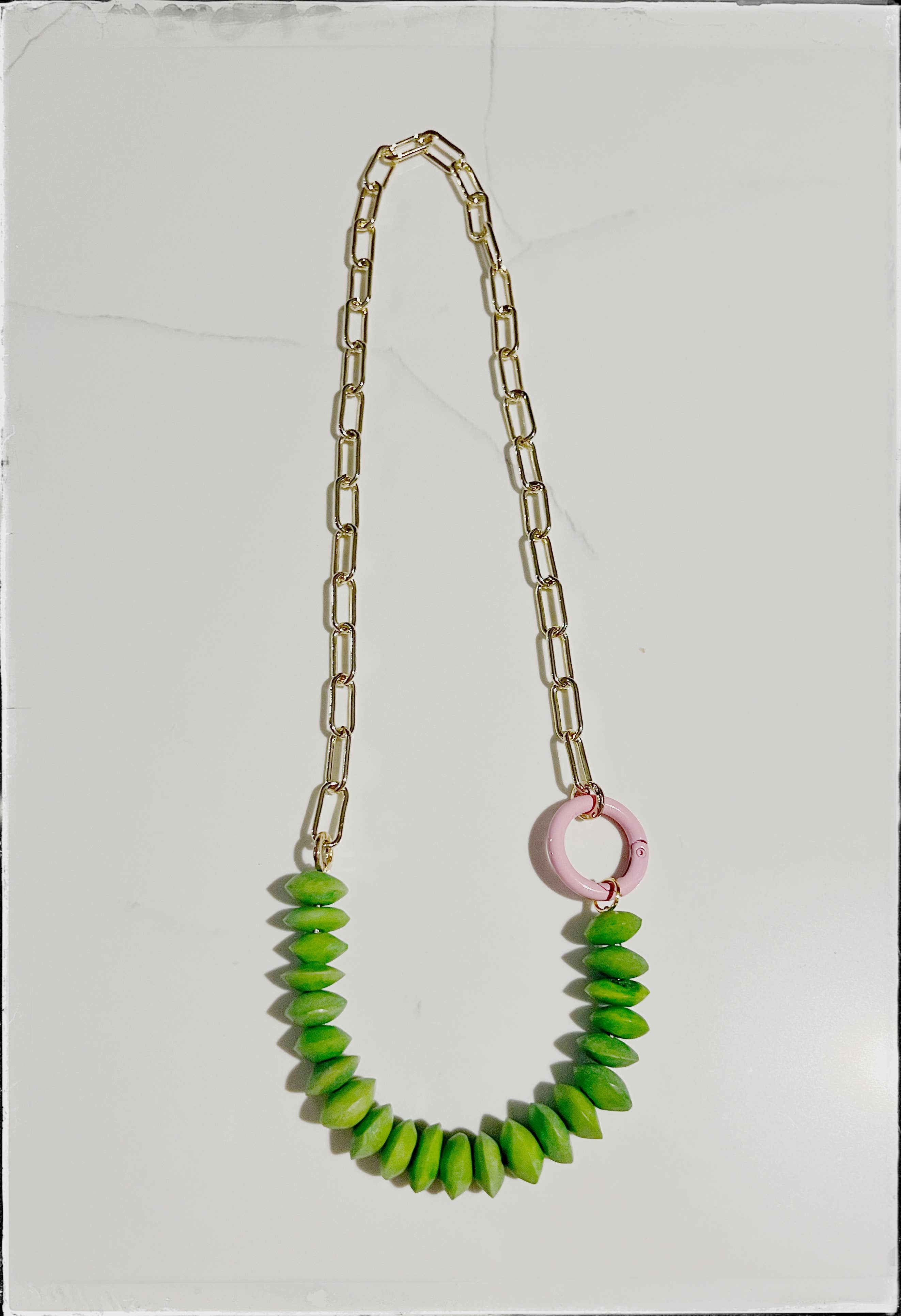 Collar midi dorado con forma de clip de papel con cuentas de Java y cristal, turquesa