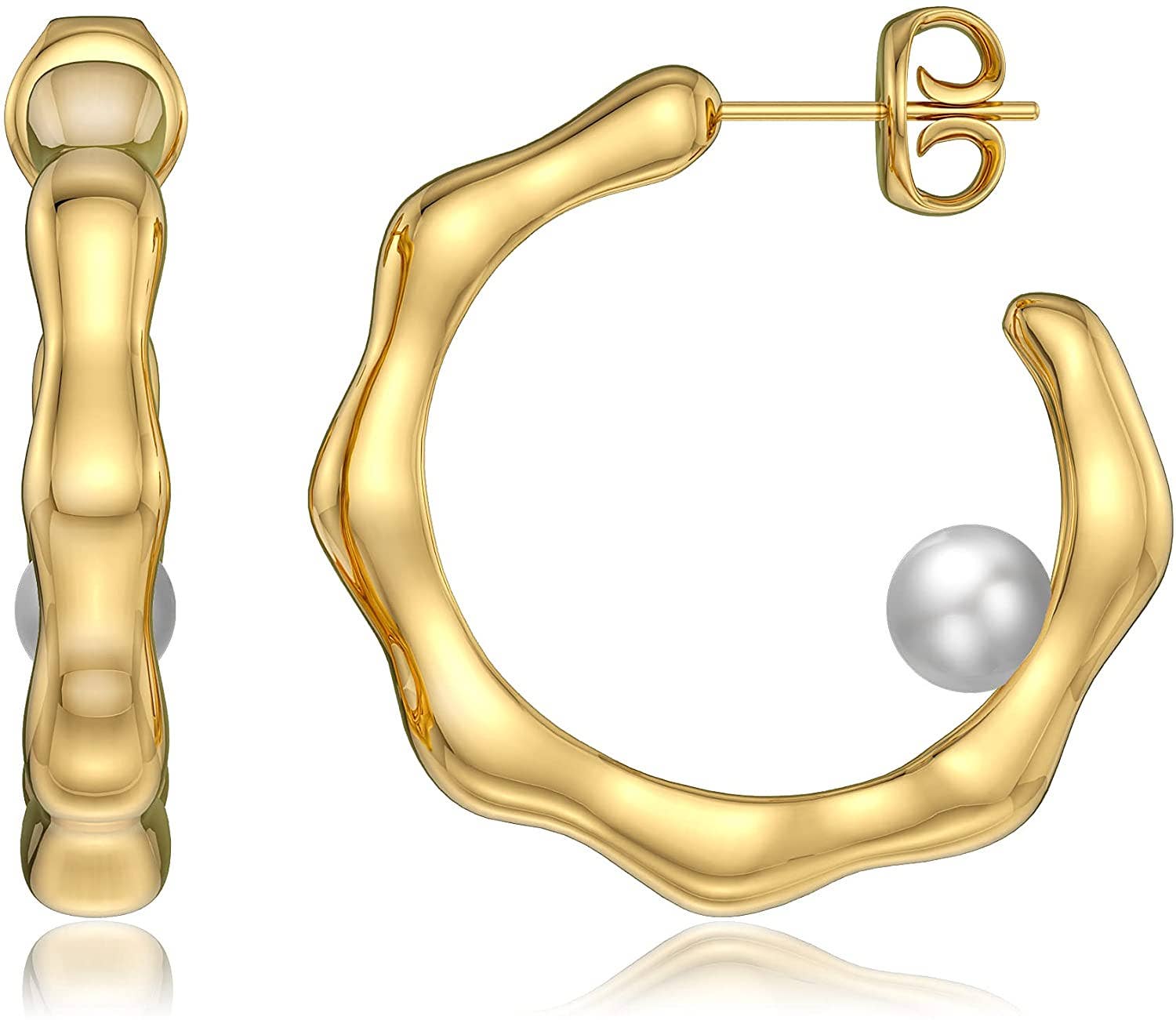 Siente el glamour con nuestros pendientes grandes de aro para mujer y atrae todas las miradas dondequiera que los uses. Hechos de acero inoxidable 316L, estos pendientes de aro gruesos están medio abiertos con una perla en el centro, lo que los hace únicos y fáciles de llevar para cualquier ocasión.