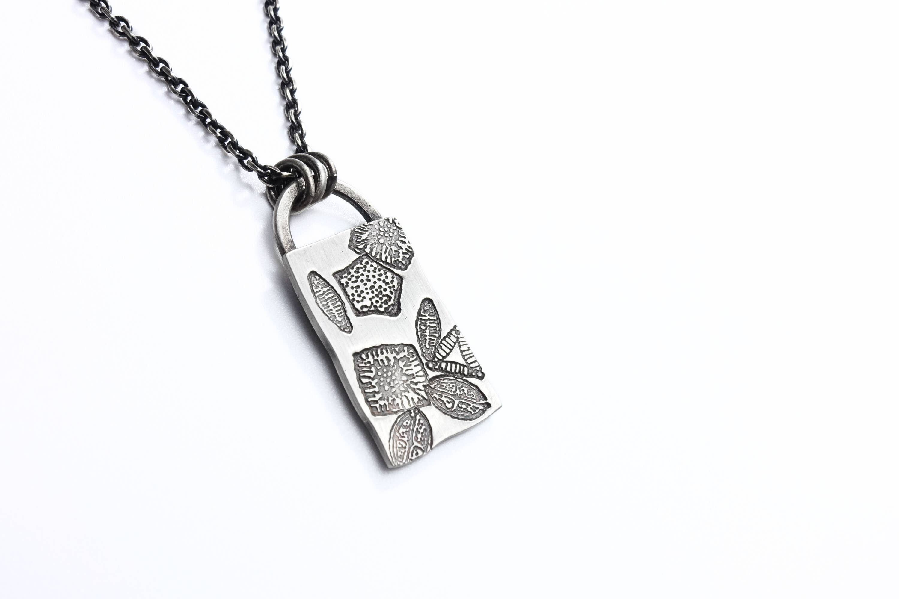 SKU: GCNECK Hecho en Estados Unidos Color: Gris, Negro, y Plateado Estilo: Artístico y Minimalista Material: Plata de ley Tema: Naturaleza Peso: 14,17 g (0,5 oz) Dimensiones: 7,6 x 7,6 cm (3 x 3 in)