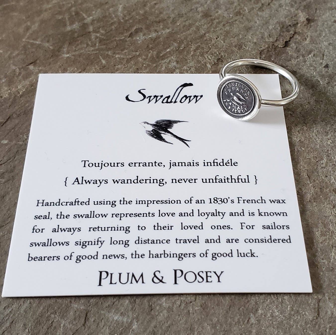Anillo grande con escudo de sirena. Certavi et vici {He luchado y conquistado}. Esta cresta cuenta con una sirena, la encarnación de la gracia y la elocuencia. La inscripción dice en latín «He luchado y conquistado». Hecho a mano con la impresión de un antiguo sello de cera británica de finales del siglo XVIII. Materiales: plata de ley. Tamaño del sello: 1" x 1 1/4" (30 mm x 24 mm). Anillo de banda: 5 mm.
