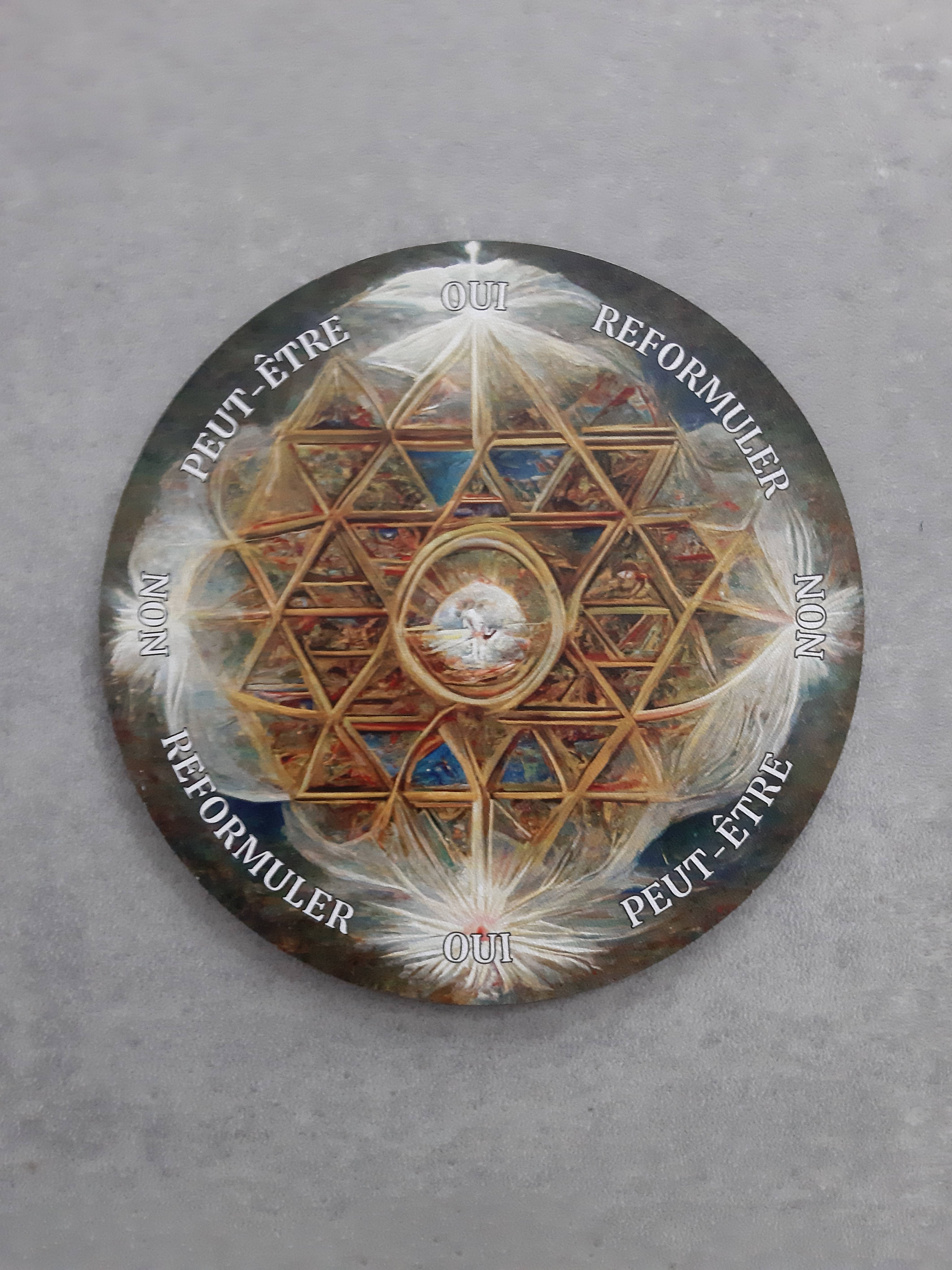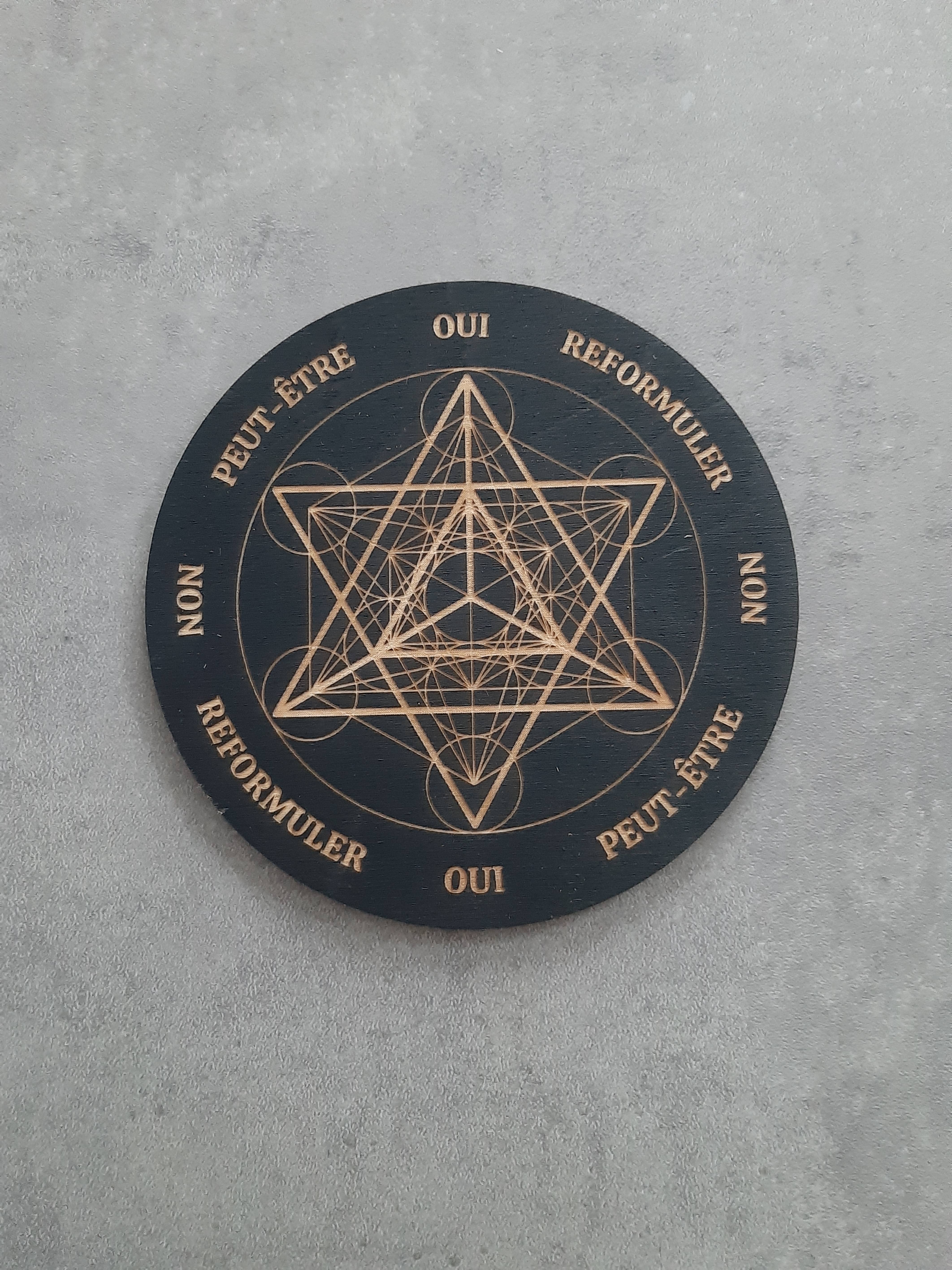 ****** Esta es una tabla de péndulo de pentagrama celta grabada hecha de madera contrachapada de arce. Se fabrican bajo pedido, puedes elegir entre aproximadamente 4, 6, 8, 10 y 12 pulgadas de diámetro y 4 mm de grosor. Puedes elegir entre madera natural o pintada de negro. Se puede usar con un péndulo (péndulo no incluido) con fines de adivinación.