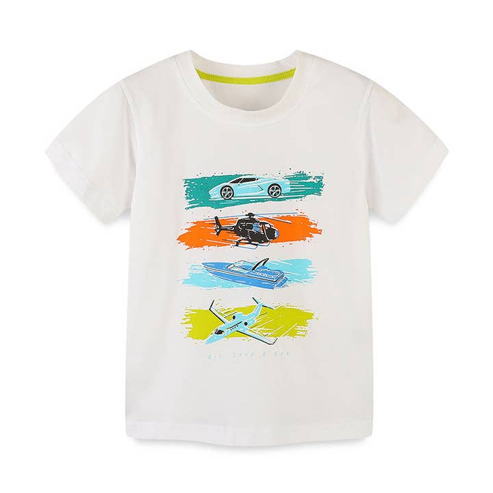 Camiseta roja de algodón a la moda con estampado de dibujos animados para bebé niño al por mayor