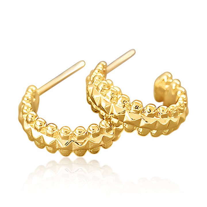 El brillo delicado se encuentra con la elegancia cotidiana. Estos pendientes de aro mini presentan piedras de circonita cúbica de grado 5A cortadas en marquesa de forma escalonada, ofreciendo un brillo refinado que realza cualquier conjunto. Fabricados en vermeil de oro de 14k y acabados con un recubrimiento e-coating anti-deslustre, están diseñados para ser duraderos y para el uso diario. • Materiales: Vermeil de oro de 14k sobre plata de ley 925; recubiertos para mayor durabilidad • Piedras: 18 circonitas cúbicas blancas de grado 5A cortadas en marquesa (1.5 x 3 mm cada una) • Dimensiones: o Diámetro exterior: 12.6 mm (0.49") o Diámetro interior: 8.5 mm (0.33") o Grosor: 3.2 mm (0.12") • Cierre: Con bisagras y postes curvados para un uso seguro y cómodo • Hipoalergénico: Libre de níquel y seguro para pieles sensibles • Usabilidad: Adecuado para el uso diario y ocasiones especiales • Ideal para: Regalos, boutiques que buscan piezas elegantes y de alta calidad • Embalaje: Presentado en una bolsa de joyería negra de marca; caja magnética azul de marca disponible para compra