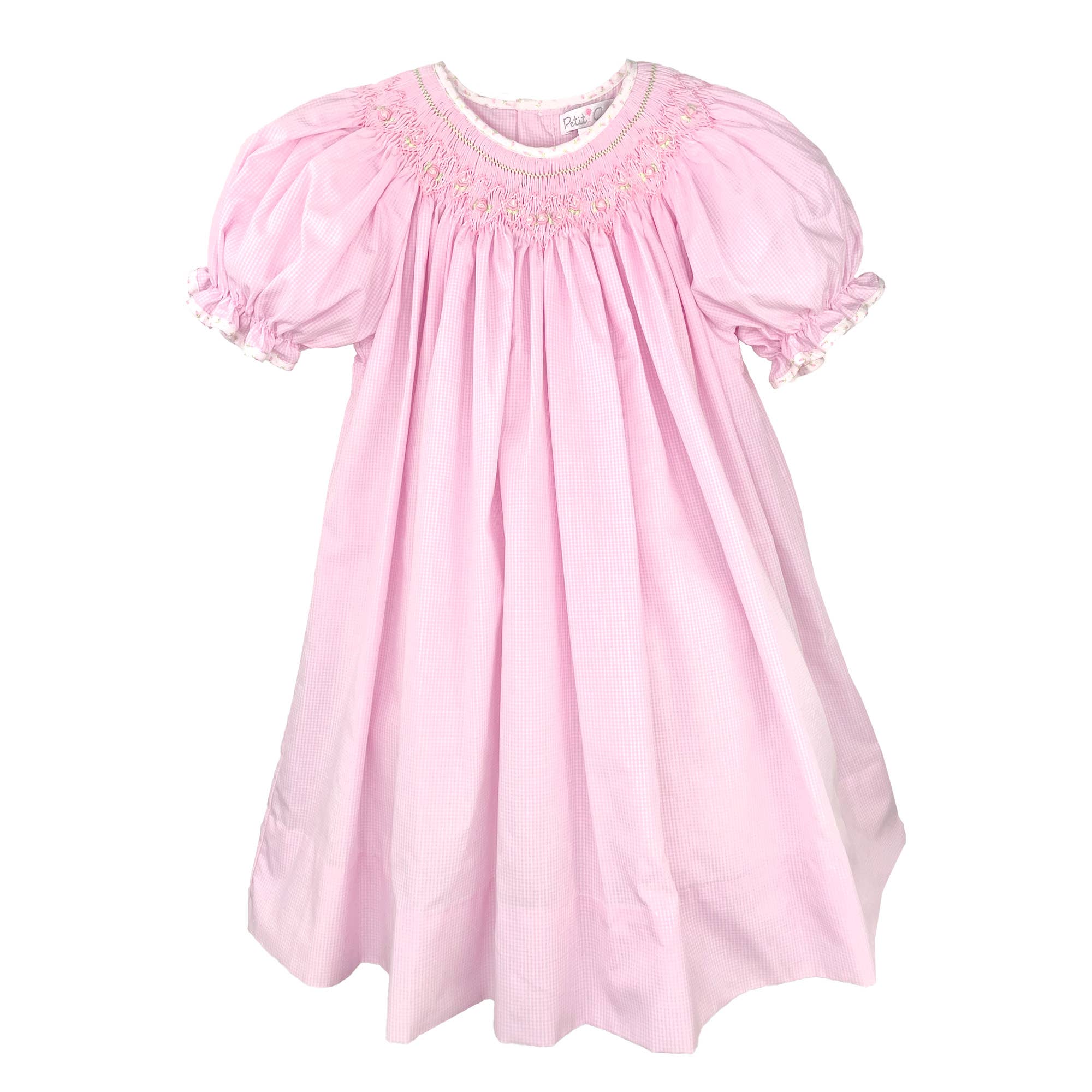 Un vestido clásico tradicional con nido de abeja que es un básico de otoño, perfecto para ocasiones especiales o fotos familiares. Este vestido de manga corta viene en una tela de cuadros azul marino que es perfecta para el otoño, con nido de abeja estilo obispo y girasoles bordados a mano y detalles. Un atuendo listo para la cosecha que es perfecto para los campos de calabazas o incluso para el Día de Acción de Gracias. La tela ligera de mezcla de algodón mantiene a los pequeños frescos y cómodos y es fácil de cuidar: simplemente lavar a máquina y secar en secadora. Los cubrepañales a juego están incluidos solo en las tallas de 12 meses a 24 meses.