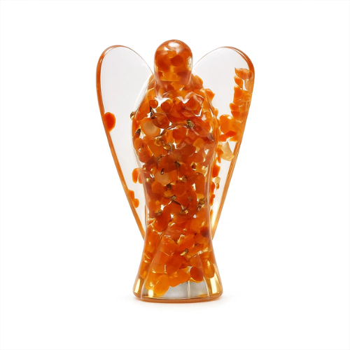 Figuritas de ángeles de orgón con aventurina verde. Ángeles Descubre nuestro tesoro más reciente: los ángeles. No solo juegan un papel importante en las religiones abrahámicas (judaísmo, cristianismo e islam), sino que también dentro del movimiento New Age hay una fuerte creencia y conexión con los ángeles. Son mensajeros, servidores y guardianes que aparecen organizados en jerarquías. El orgón se procesa en resina fundida con la forma de un ángel con alas, creando hermiosas estatuas sólidas. Aventurina verde Este ángel de orgonita está impregnado con el color verde de la compasión. Fomenta la empatía y la tolerancia. Es la piedra de los chakras tercero y cuarto, y tiene una influencia positiva sobre el corazón, los vasos sanguíneos, la circulación y la presión arterial. Por eso es comúnmente usada por personas con manos y pies fríos, que a menudo son pensadores cuyo cuerpo pierde energía y calor.