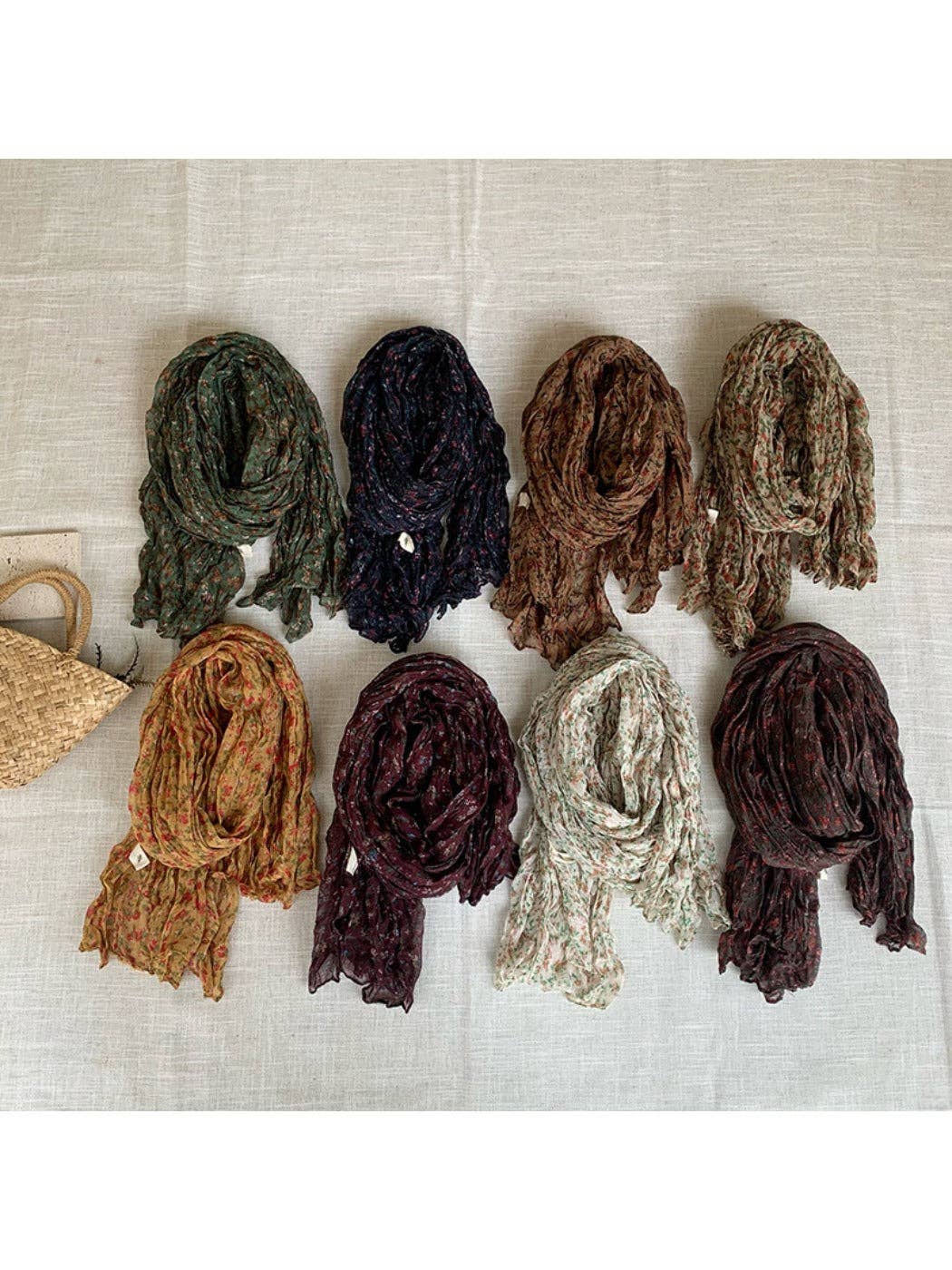 Bufanda ligera con patrón floral vintage y detalles fruncidos al por mayor