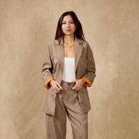 Blazer casual versátil con cuello de bloques de color
