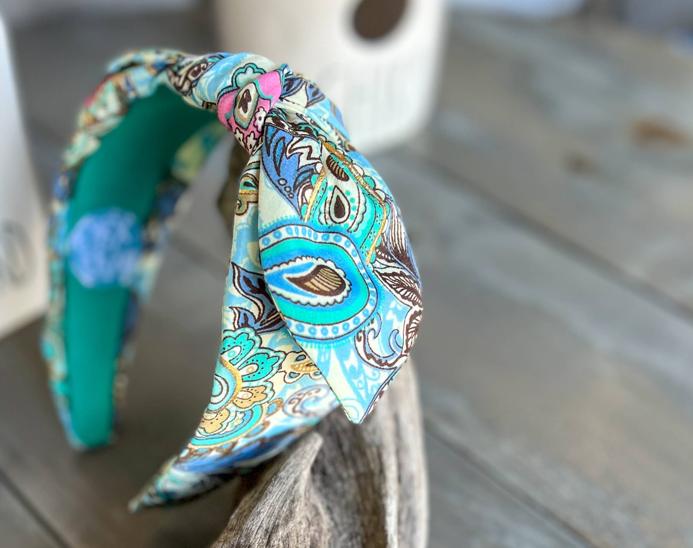 Diadema Lilly Aqua con estampado floral floral y cuentas en forma de semillas